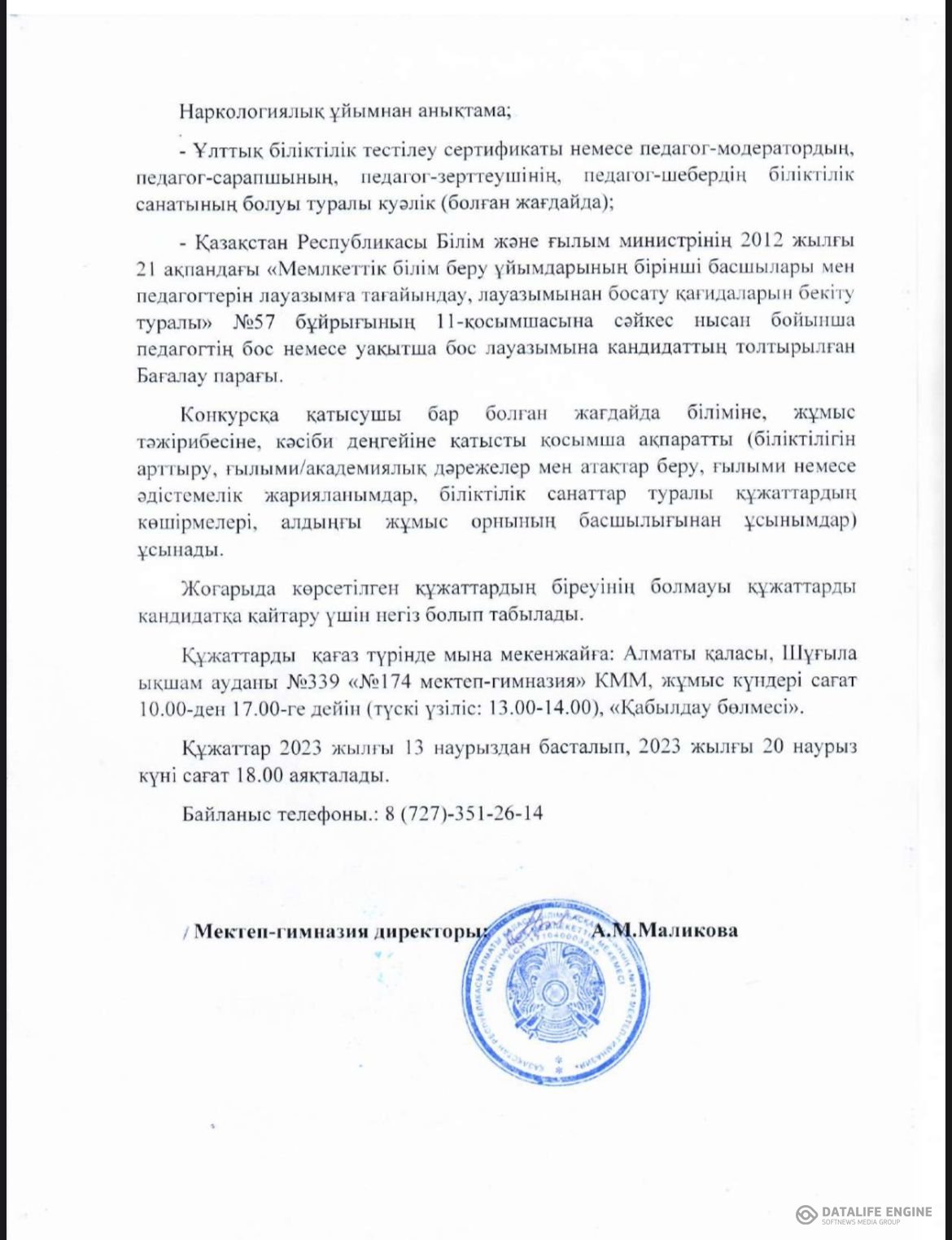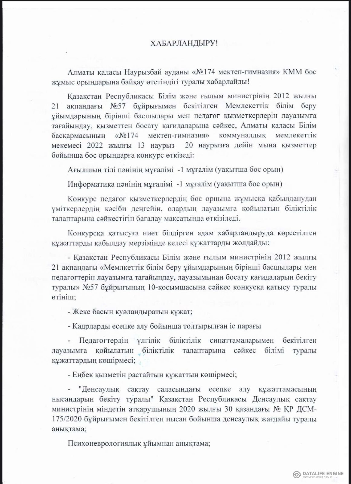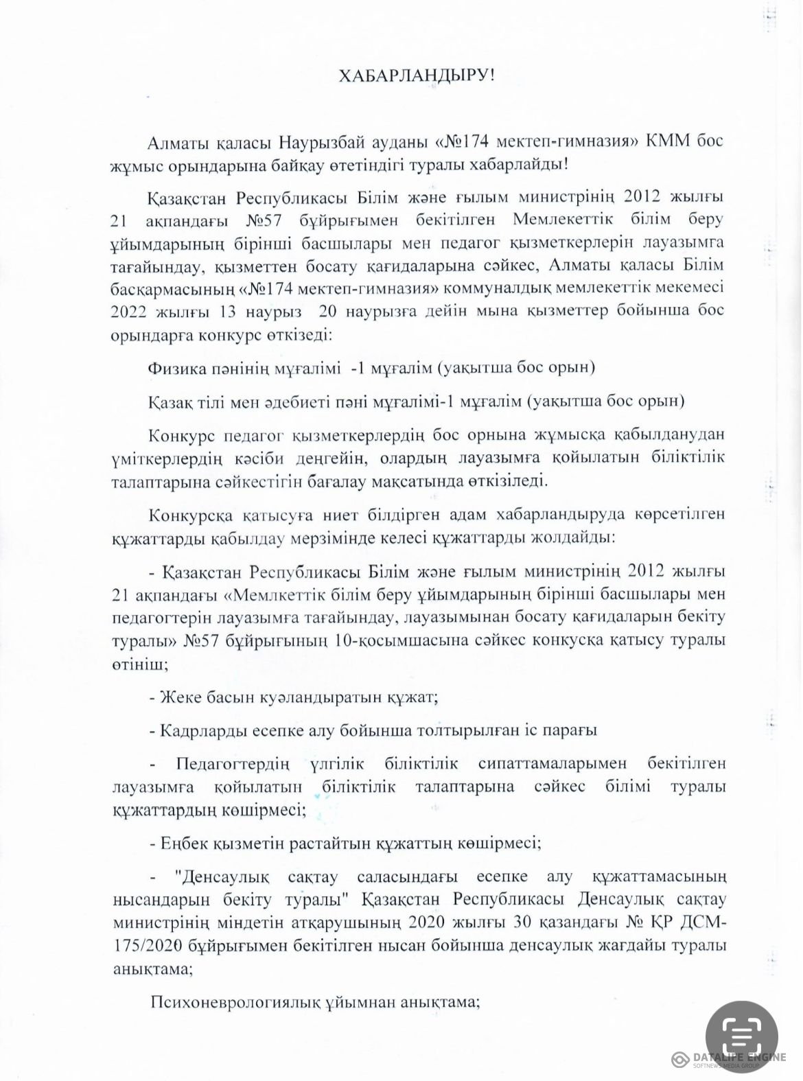 13 март 2023 0 1 2 3 4 5 Бос жұмыс орындарына байқау өтетіндігін хабарлаймыз! Осы беттің QR-коды:QR-код этой страницы: