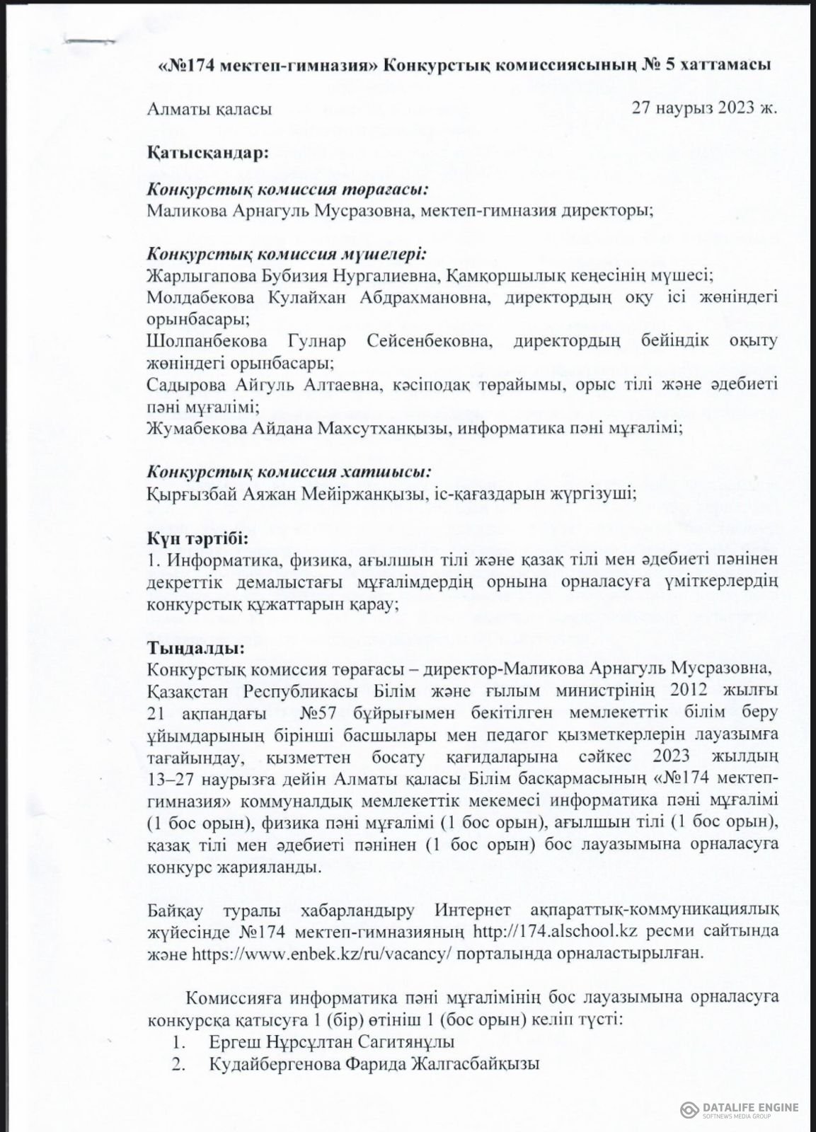 27 март 2023 0 1 2 3 4 5 Конкурстық комиссиясының №5 хаттамасы 174-mg-5-hattama-27_03-konkurs.pdf [1,35 Mb] (cкачиваний: 4) Посмотреть онлайн файл: 174-mg-5-hattama-27_03-konkurs.pdf Осы беттің QR-коды:QR-код этой страницы: