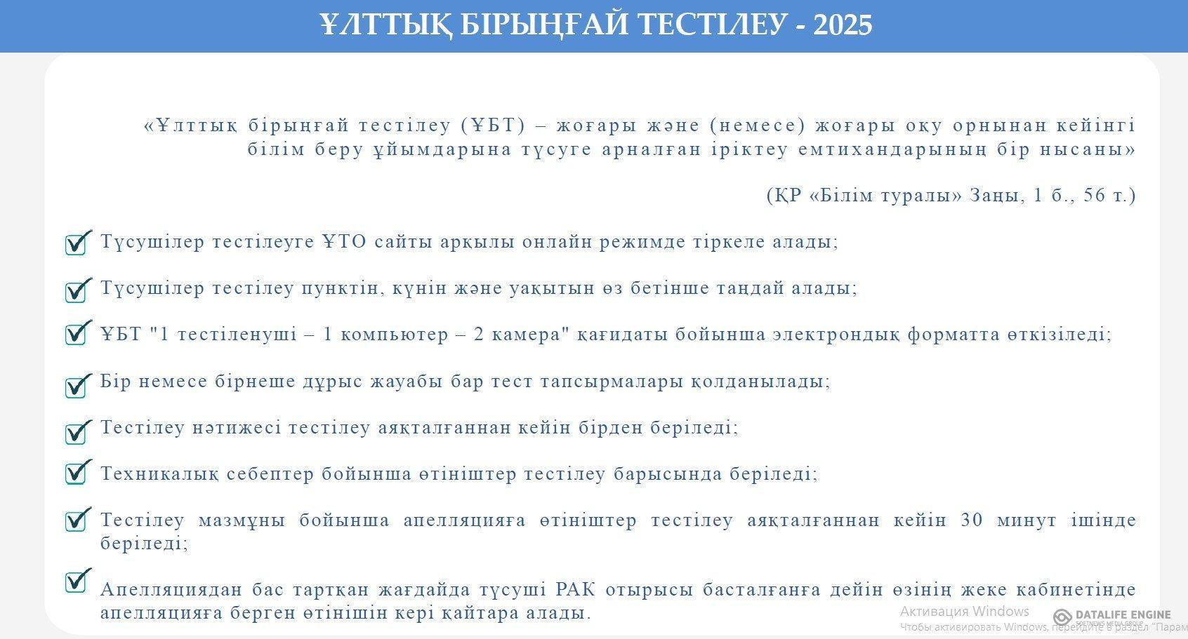 ҰЛТТЫҚ БІРЫҢҒАЙ ТЕСТІЛЕУ -2025