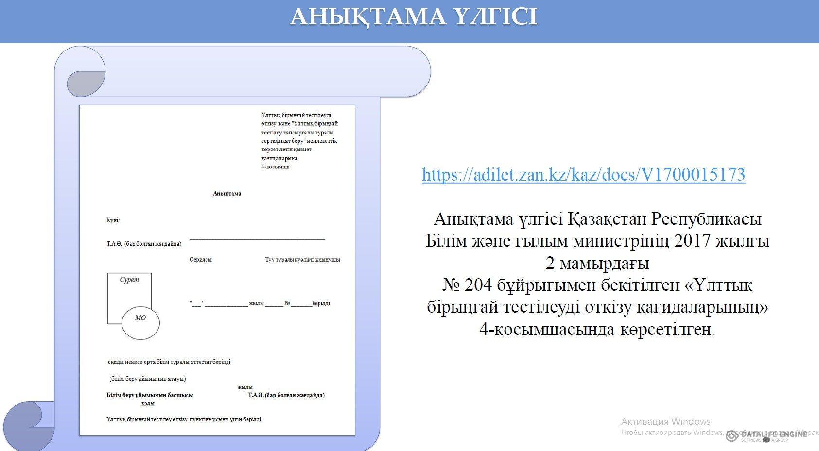 Қаңтар ойында өткізілетін ҰЛТТЫҚ БІРЫҢҒАЙ ТЕСТІЛЕУ