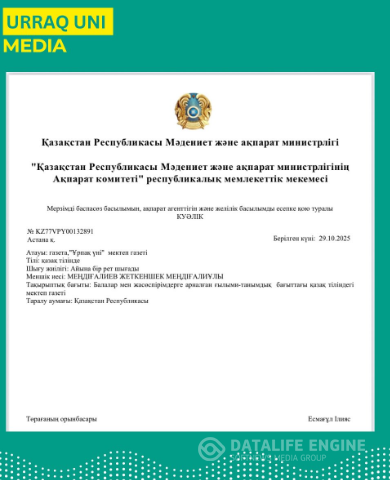 Алматы қаласы, Наурызбай ауданындағы №174 мектеп-гимназияның «Ұрпақ үні» газеті ресми куәлік алды!