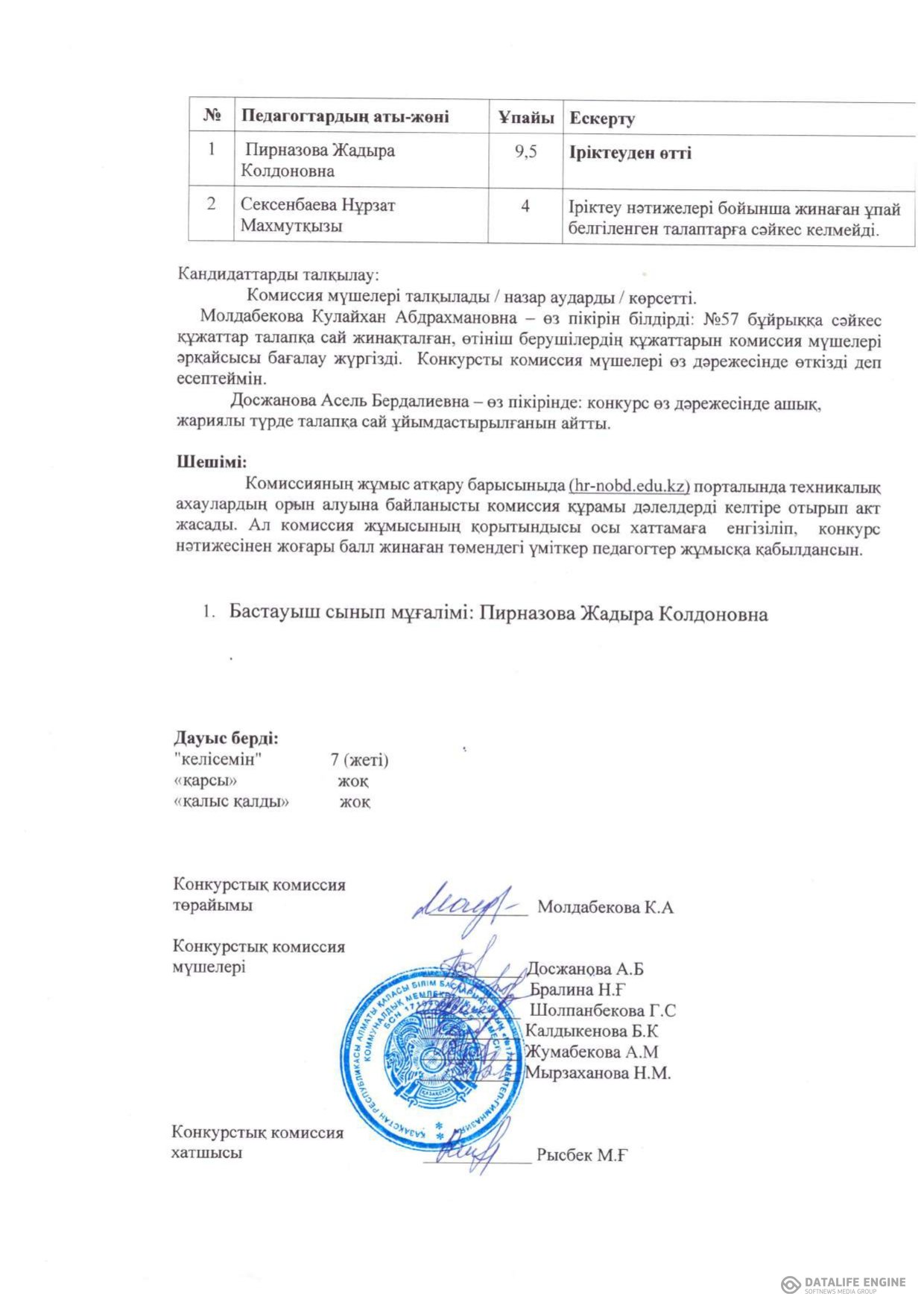 Конкурстық комиссияның №2 хаттамасы