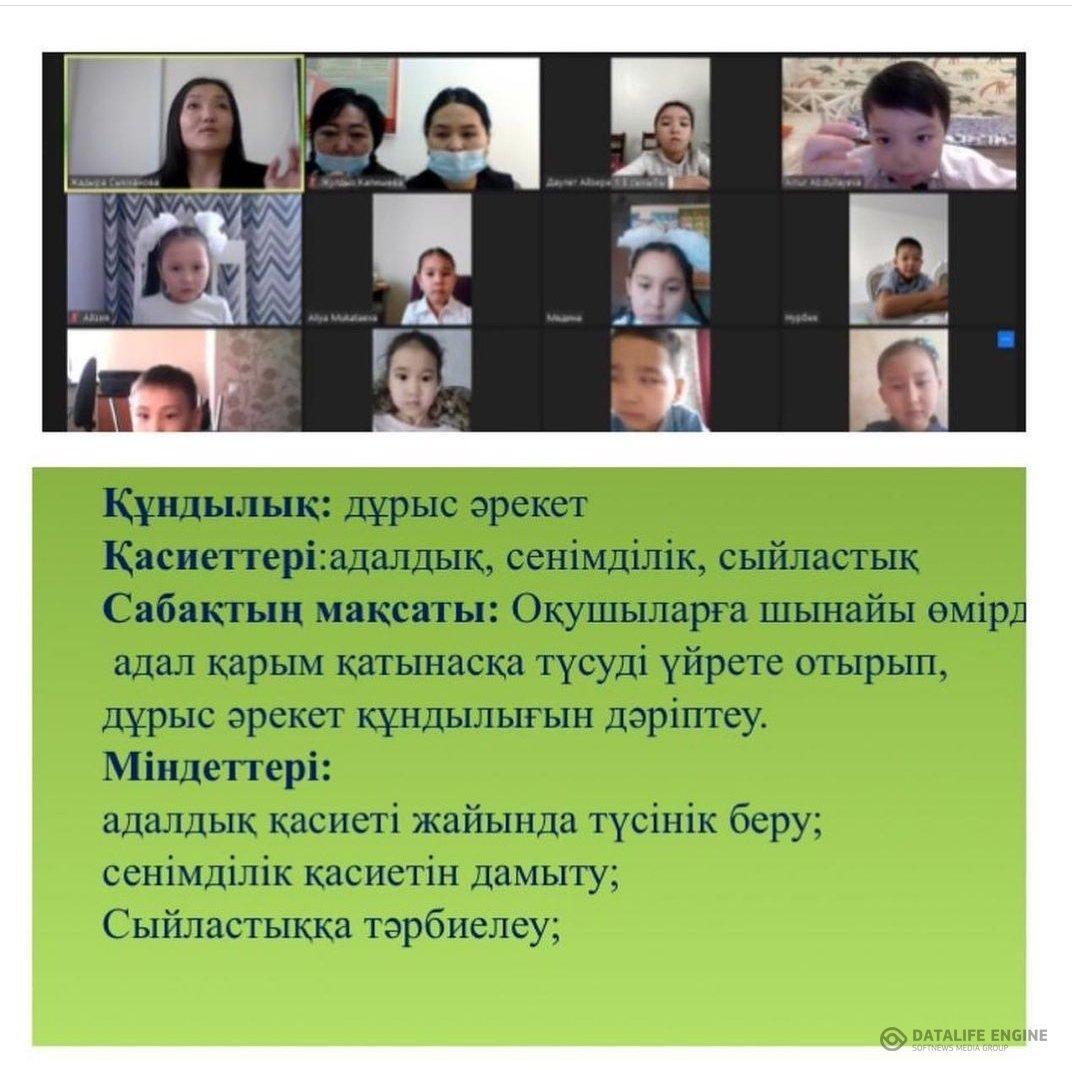 Ж.Сымханова өзін-өзі тану пәнінен 1 “В” сыныбына “Қарым - қатынас әліппесі ” тақырыбында ZOOM платформасы арқылы ашық сабақ өтті.