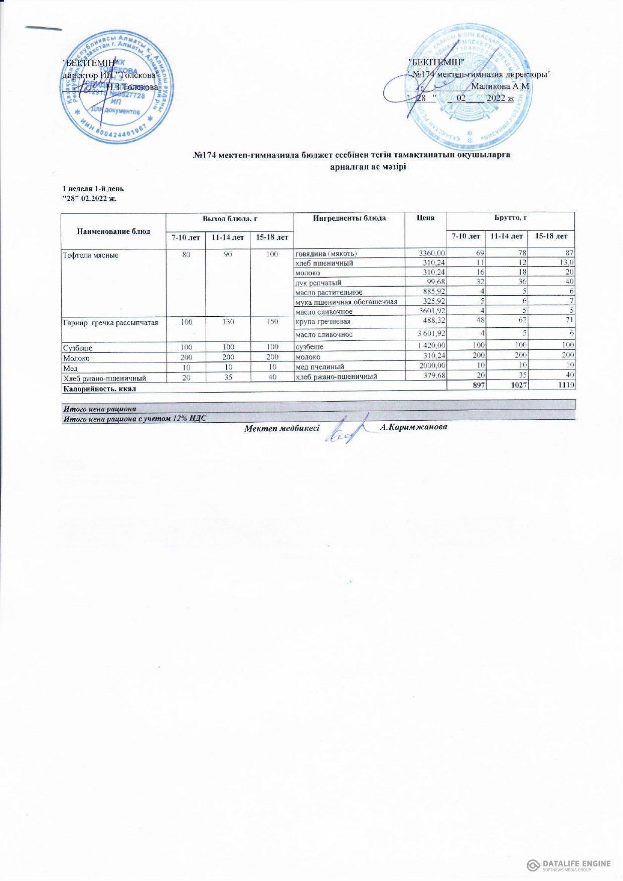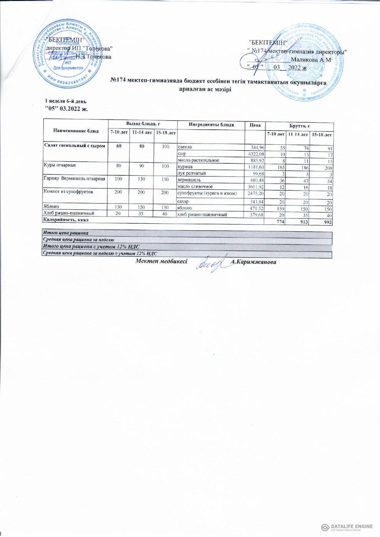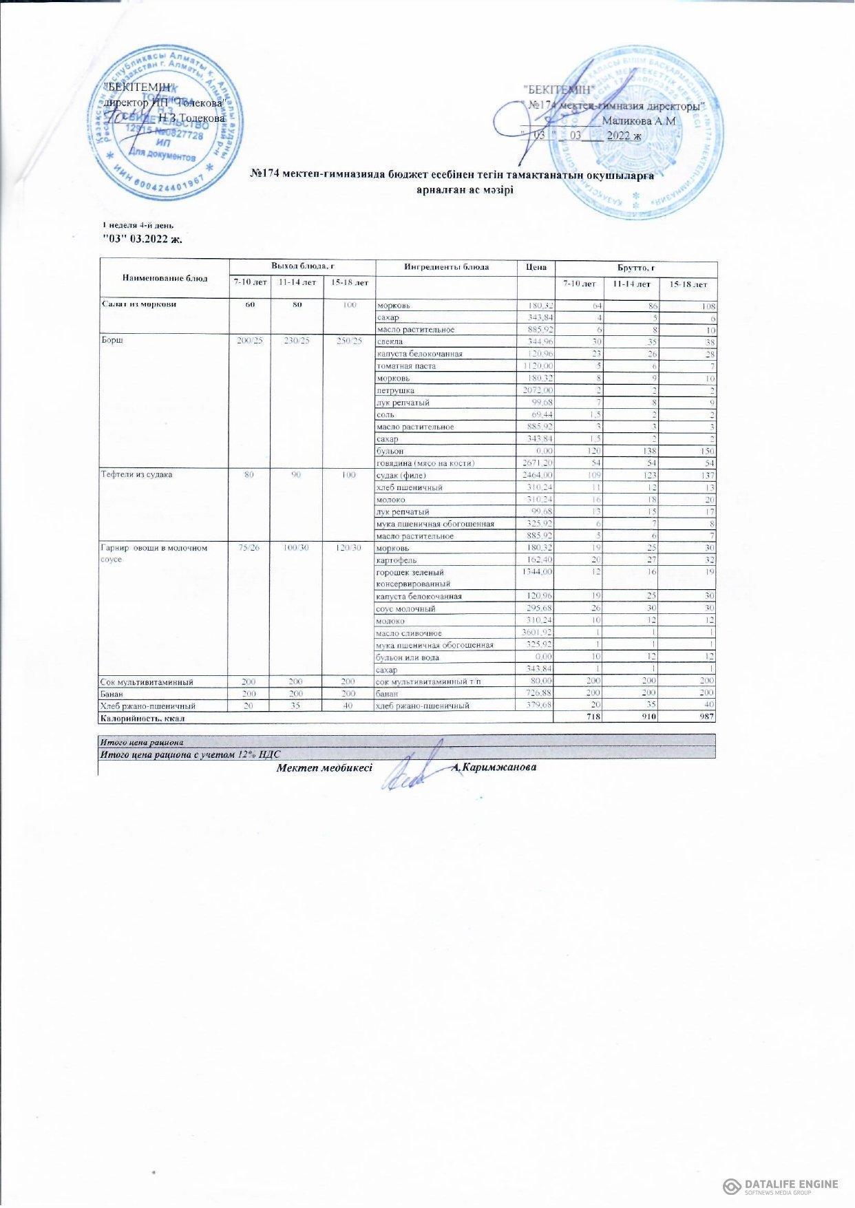 Ыстық тамақты ұйымдастырудың жұмыс жоспары