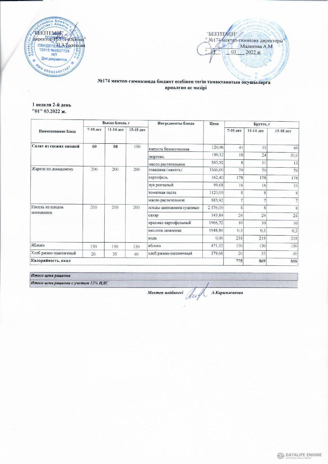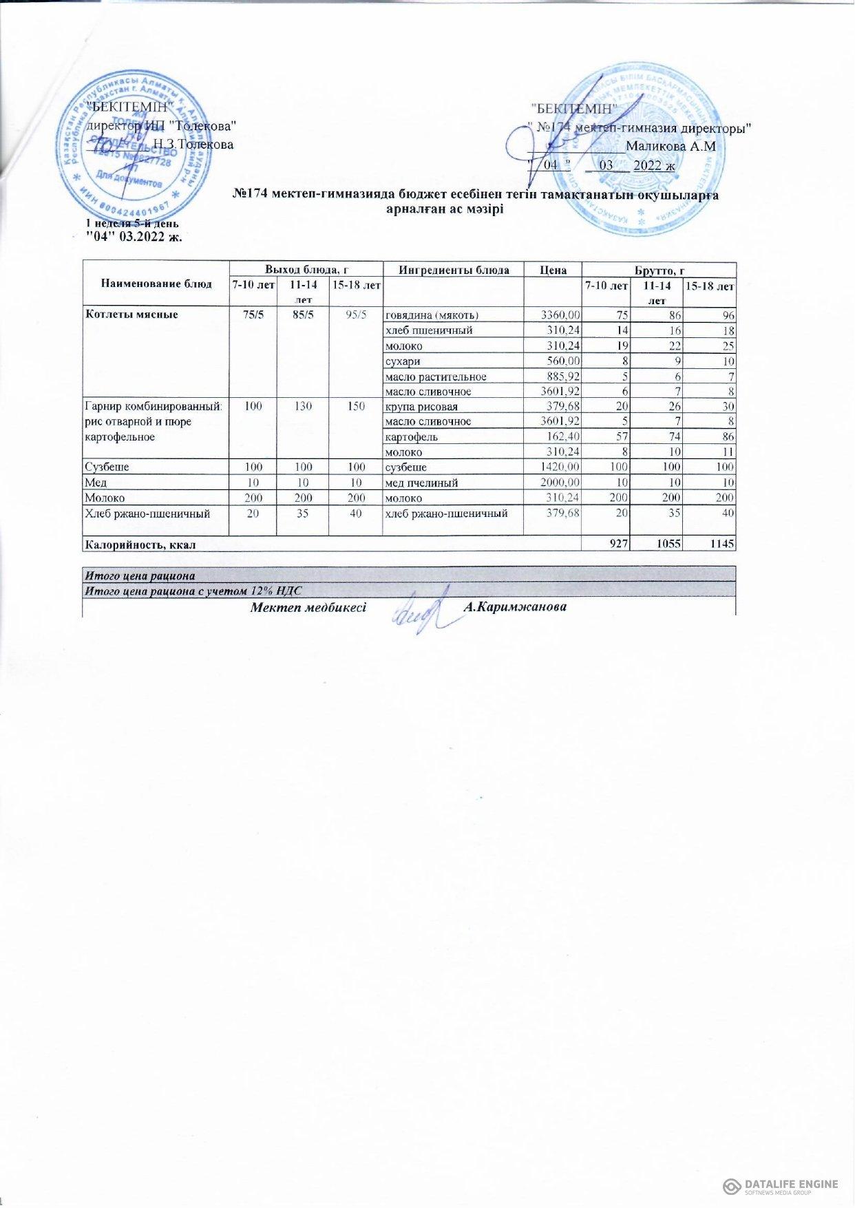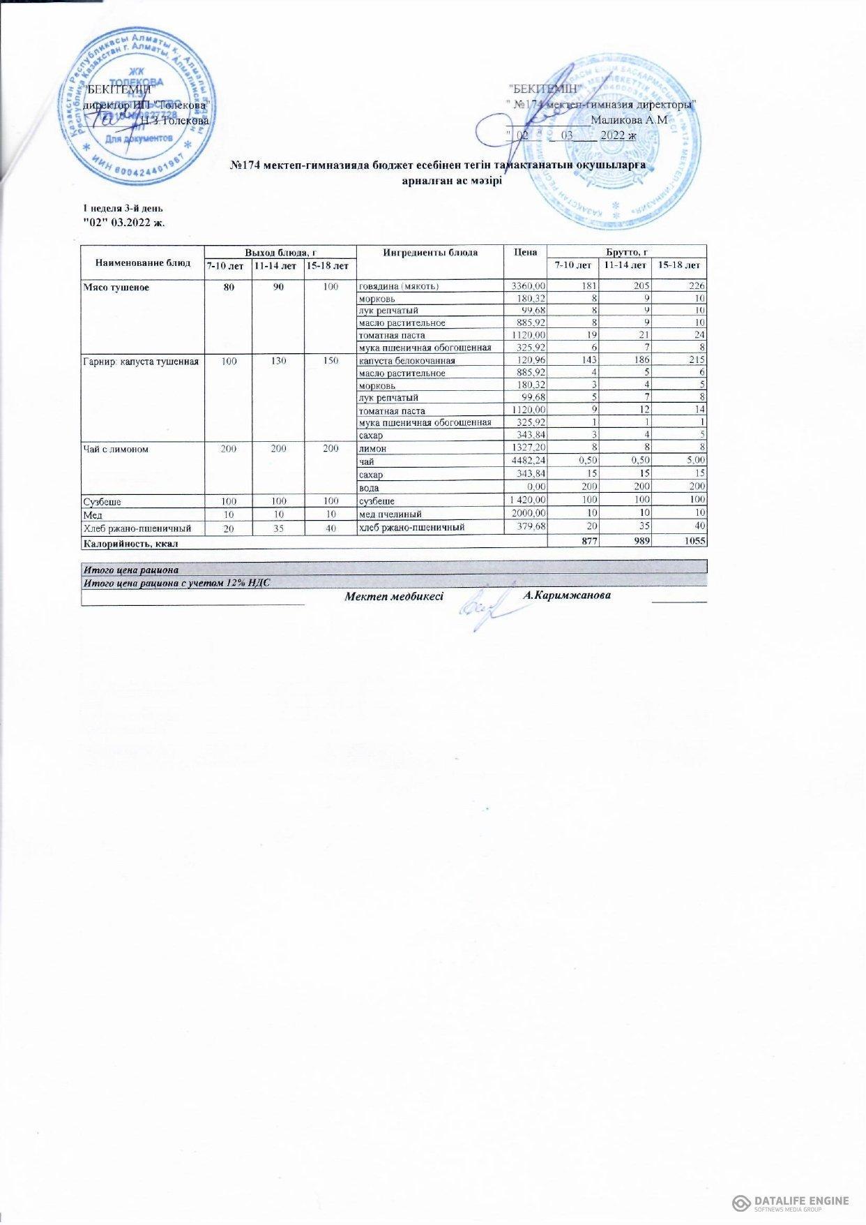 Ыстық тамақты ұйымдастырудың жұмыс жоспары
