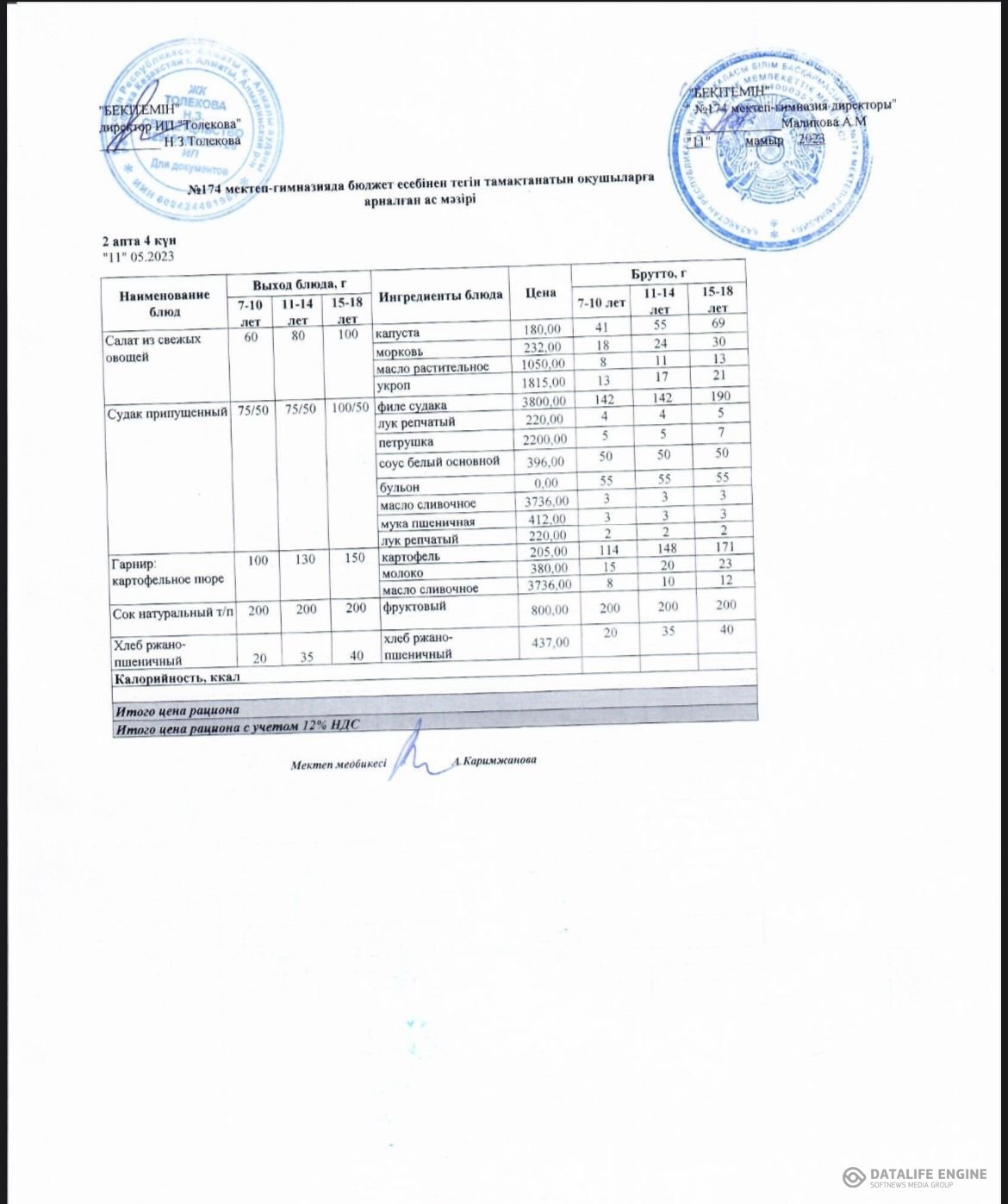 Ас мәзірі 2021-2022 оқу жылы қыс-көктем