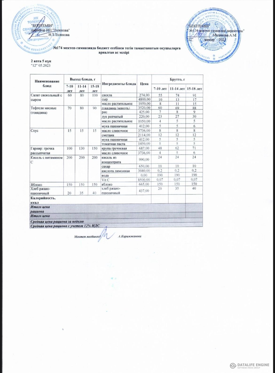 Ыстық тамақты ұйымдастырудың жұмыс жоспары