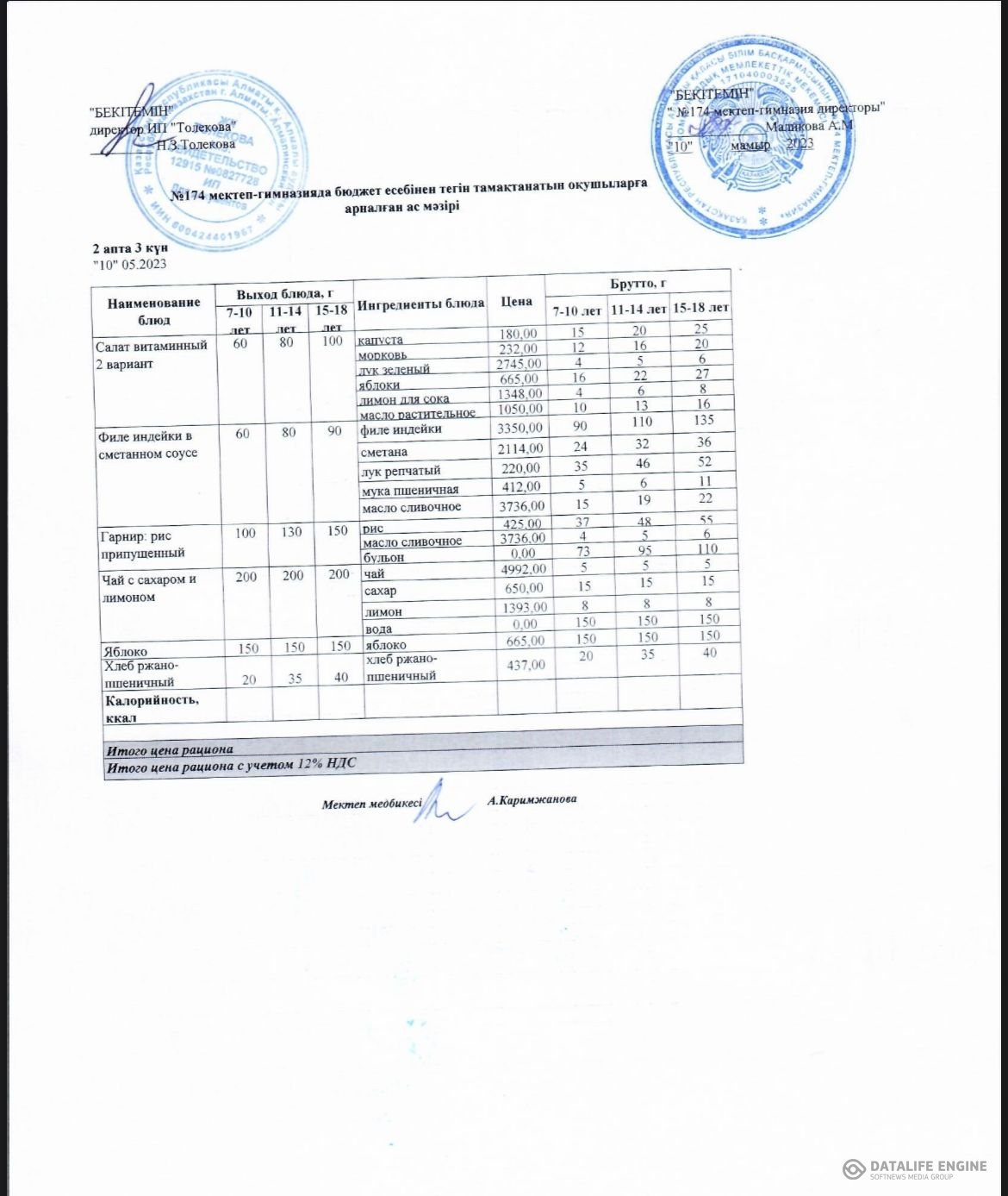 Ыстық тамақты ұйымдастырудың жұмыс жоспары