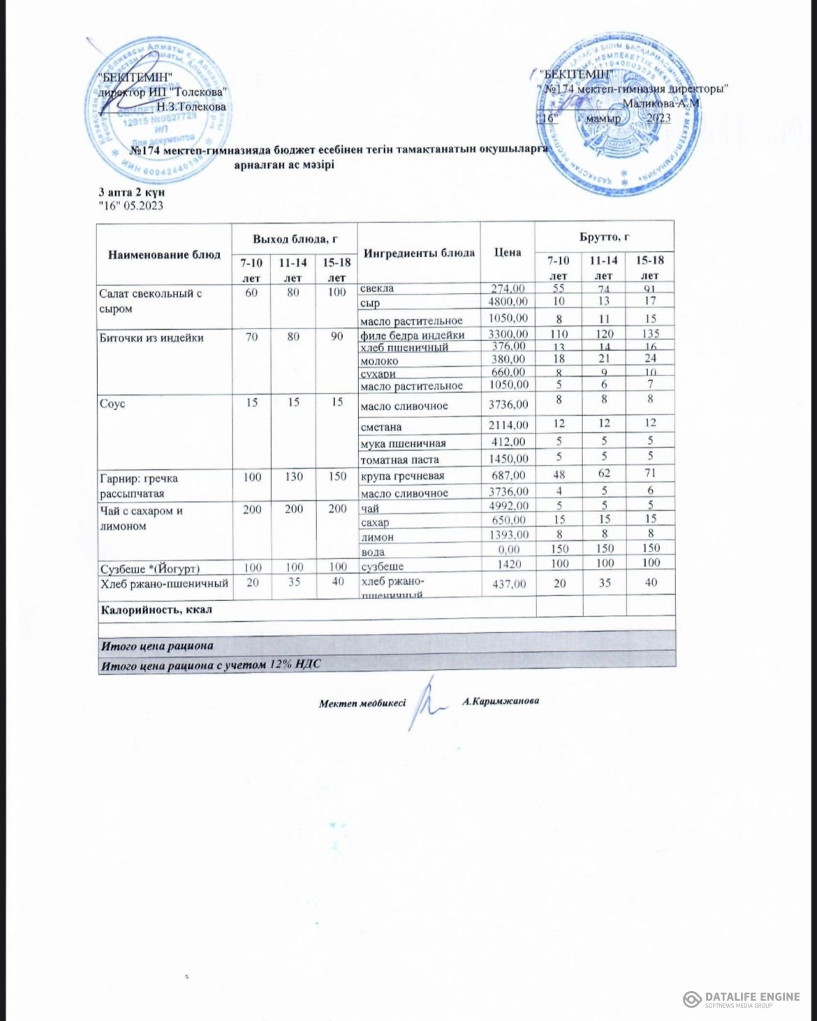 Ыстық тамақты ұйымдастырудың жұмыс жоспары