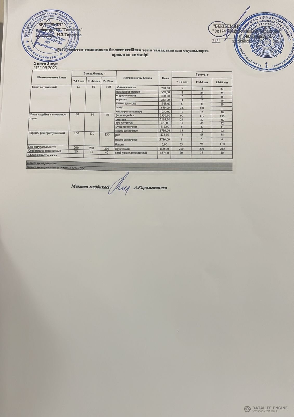 Ыстық тамақты ұйымдастырудың жұмыс жоспары