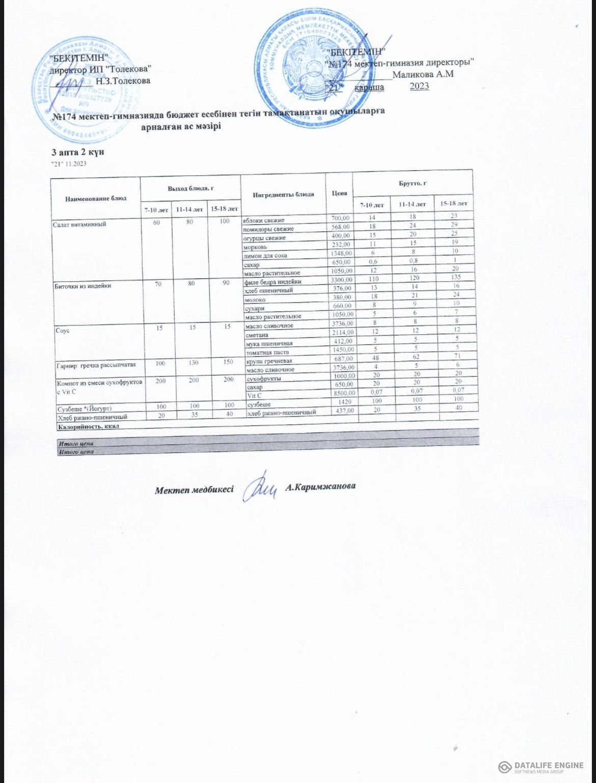Ыстық тамақты ұйымдастырудың жұмыс жоспары