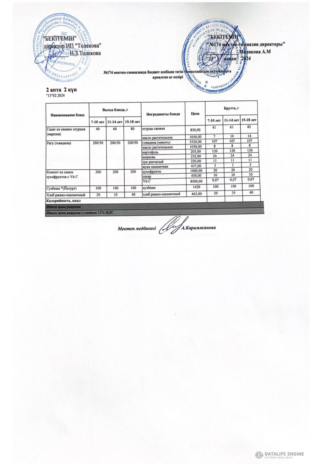 Ыстық тамақты ұйымдастырудың жұмыс жоспары