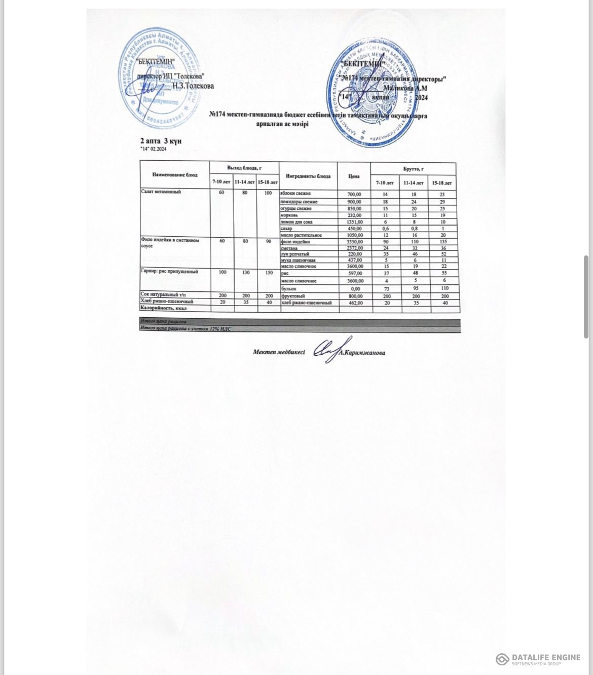 Ыстық тамақты ұйымдастырудың жұмыс жоспары