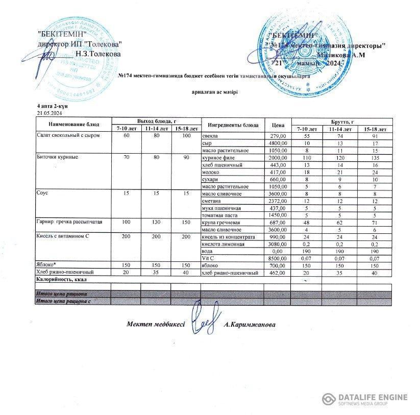 Ыстық тамақты ұйымдастырудың жұмыс жоспары