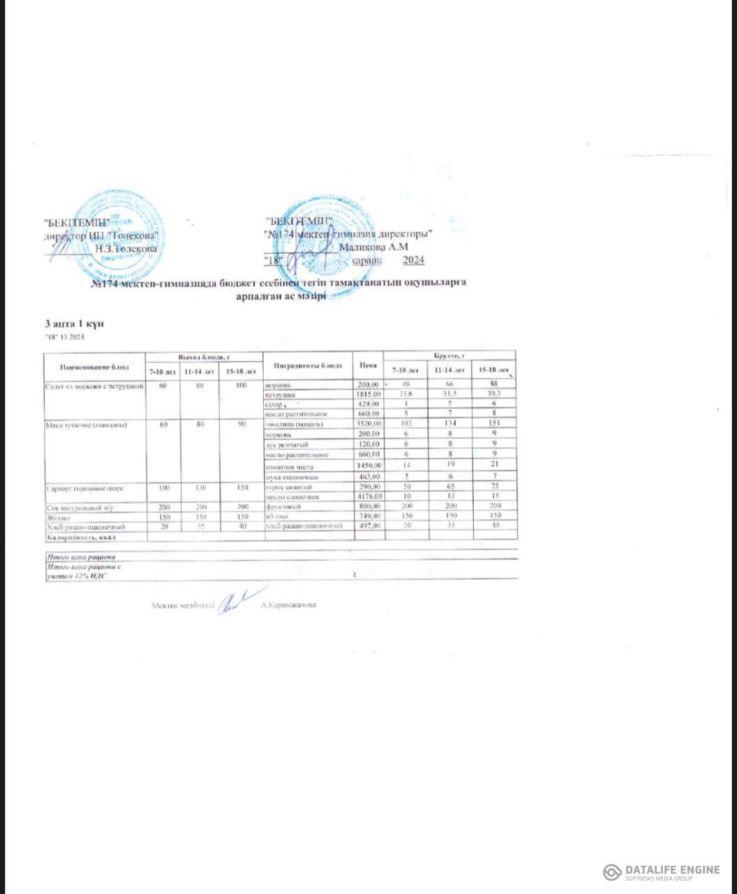 Ыстық тамақты ұйымдастырудың жұмыс жоспары