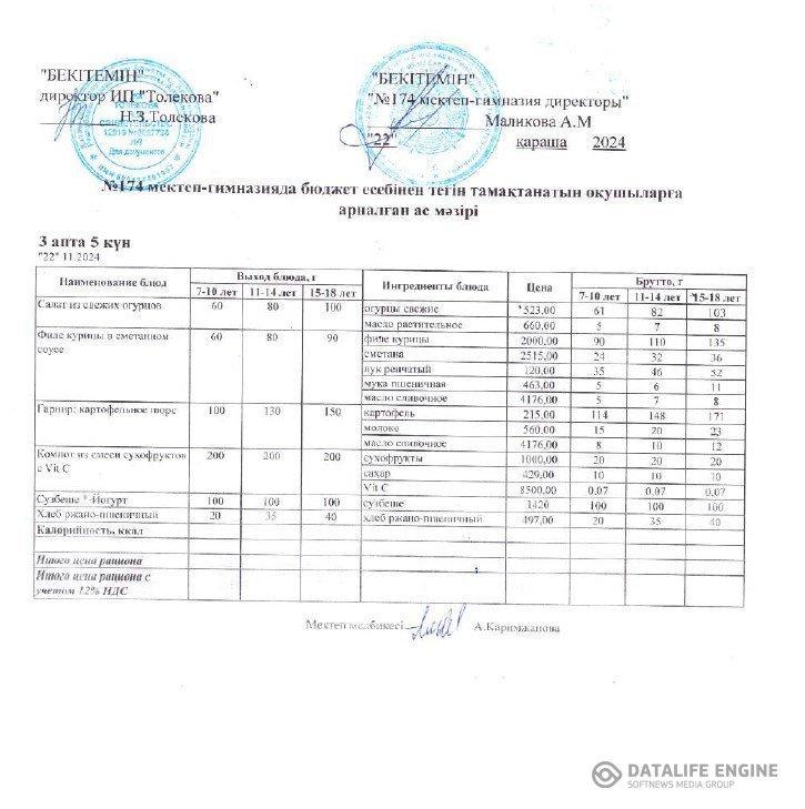 Ыстық тамақты ұйымдастырудың жұмыс жоспары