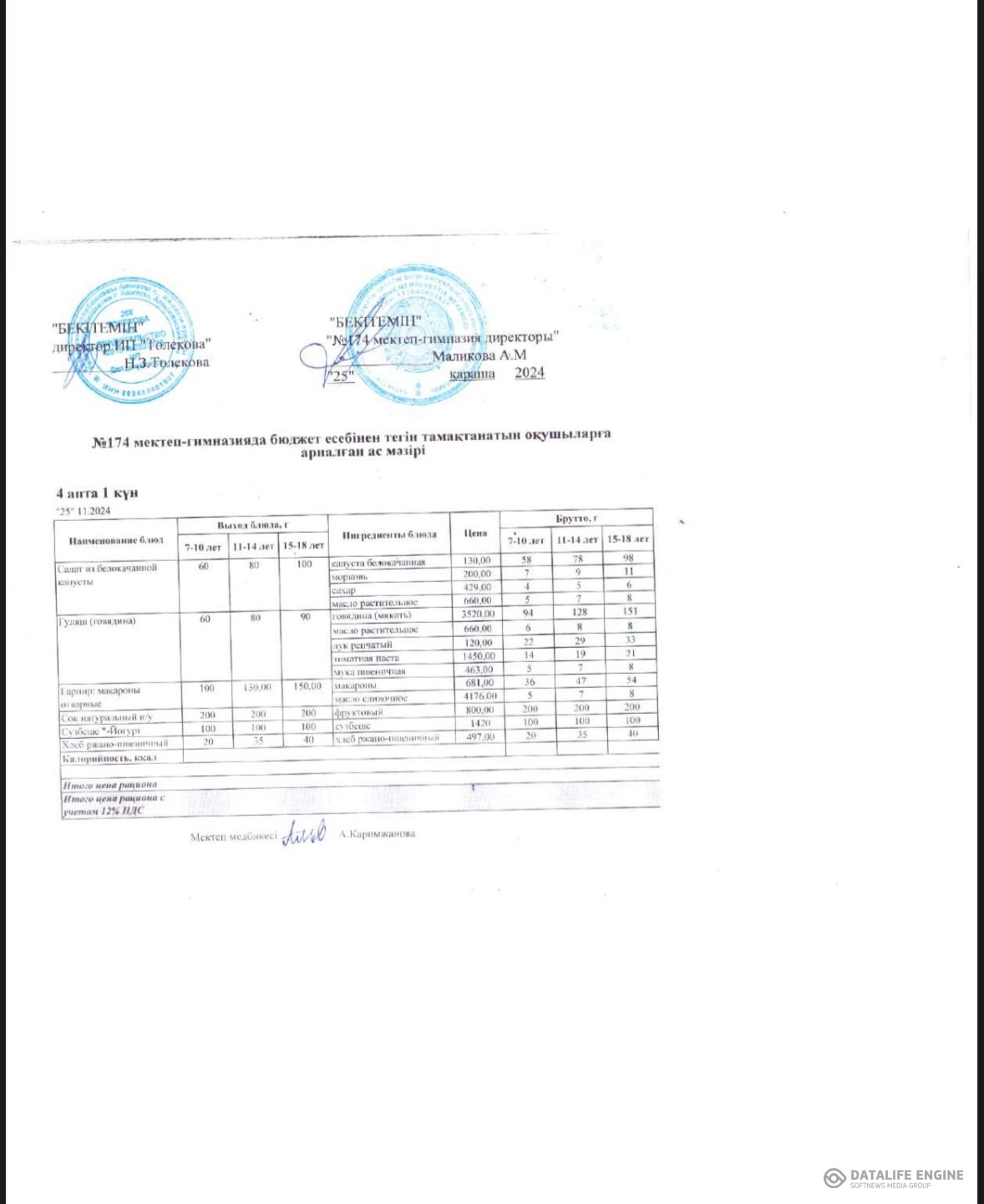 Ыстық тамақты ұйымдастырудың жұмыс жоспары