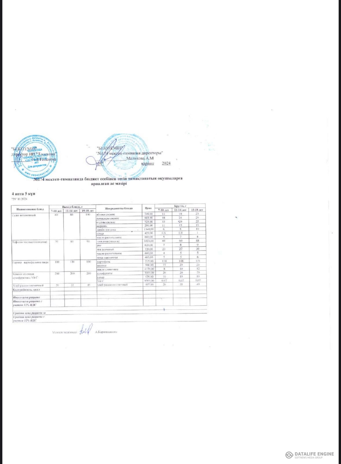 Ыстық тамақты ұйымдастырудың жұмыс жоспары