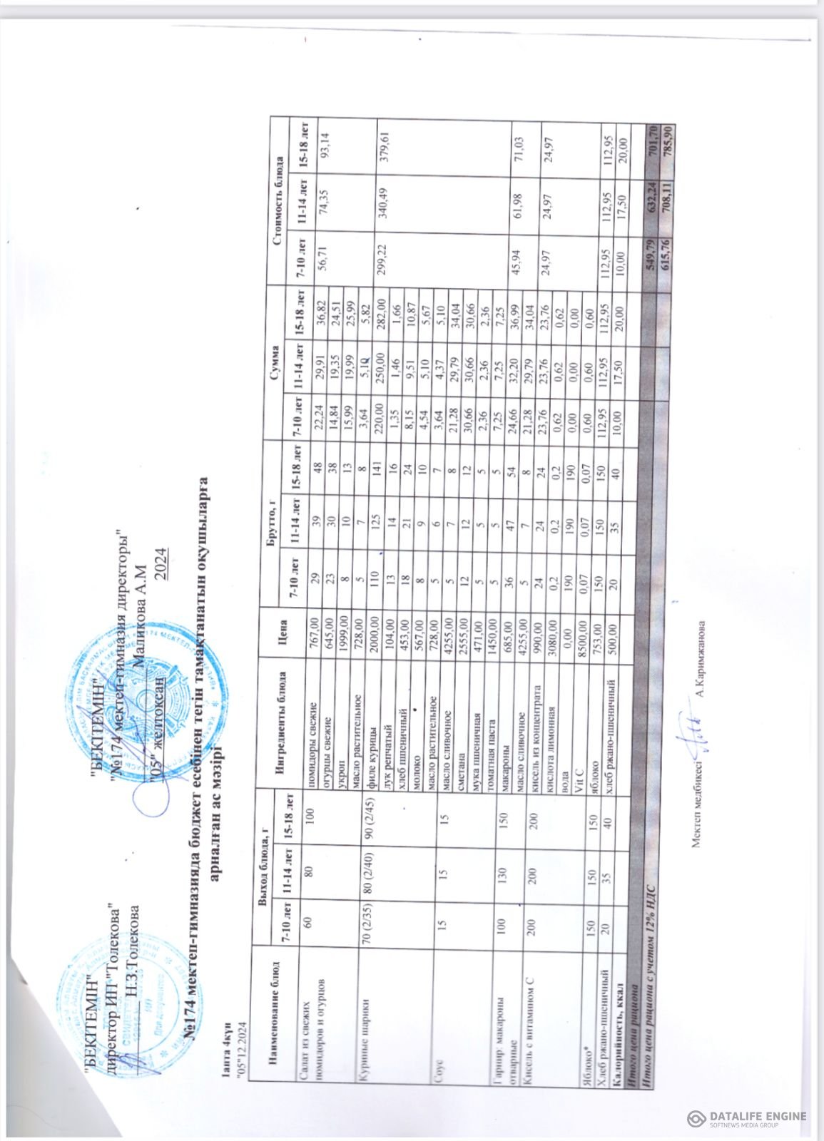 Ыстық тамақты ұйымдастырудың жұмыс жоспары