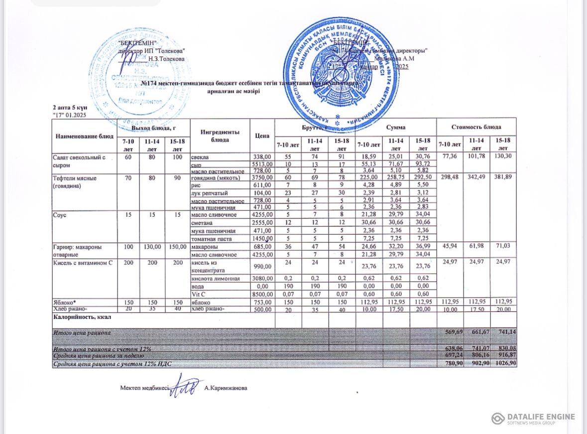 Ыстық тамақты ұйымдастырудың жұмыс жоспары