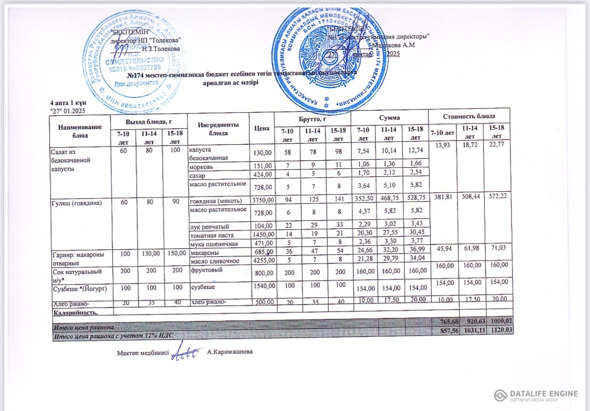 Ыстық тамақты ұйымдастырудың жұмыс жоспары