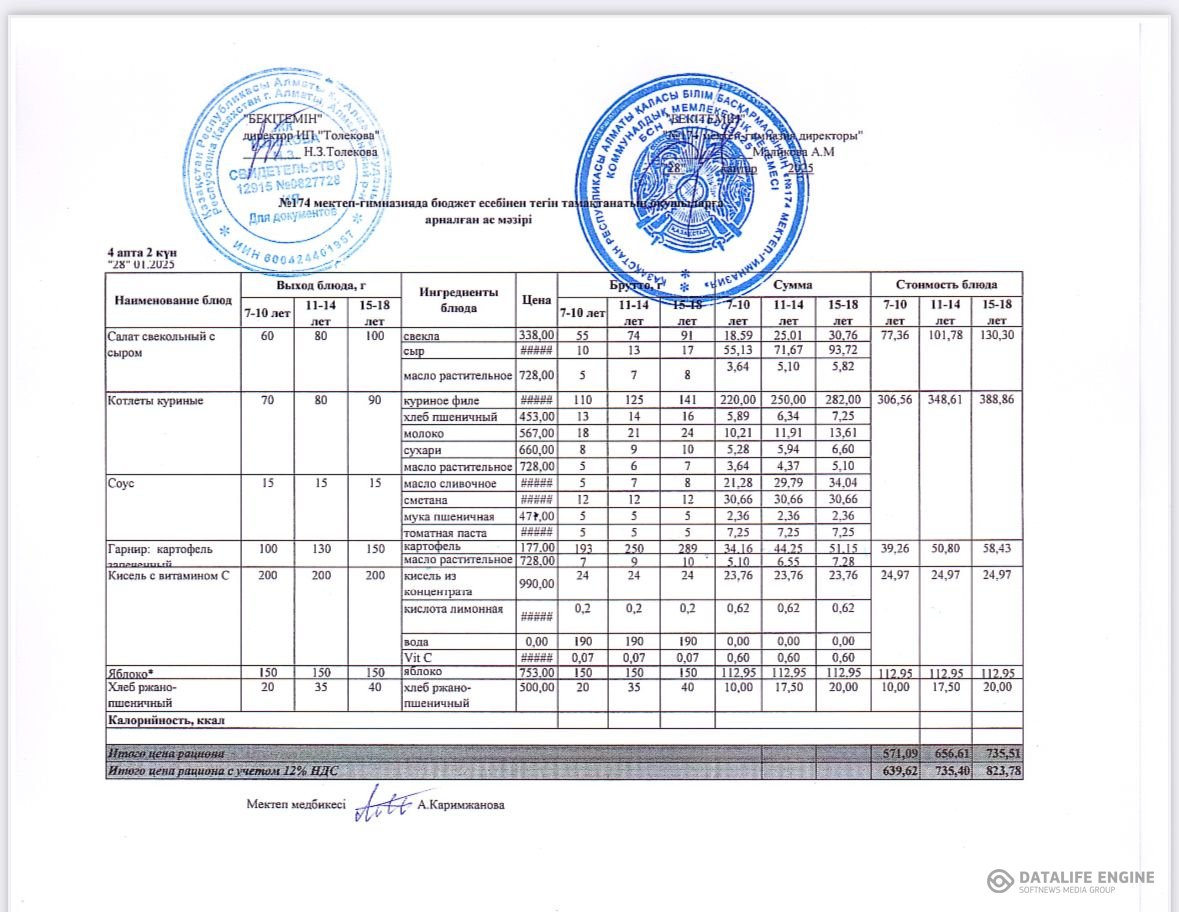 Ыстық тамақты ұйымдастырудың жұмыс жоспары