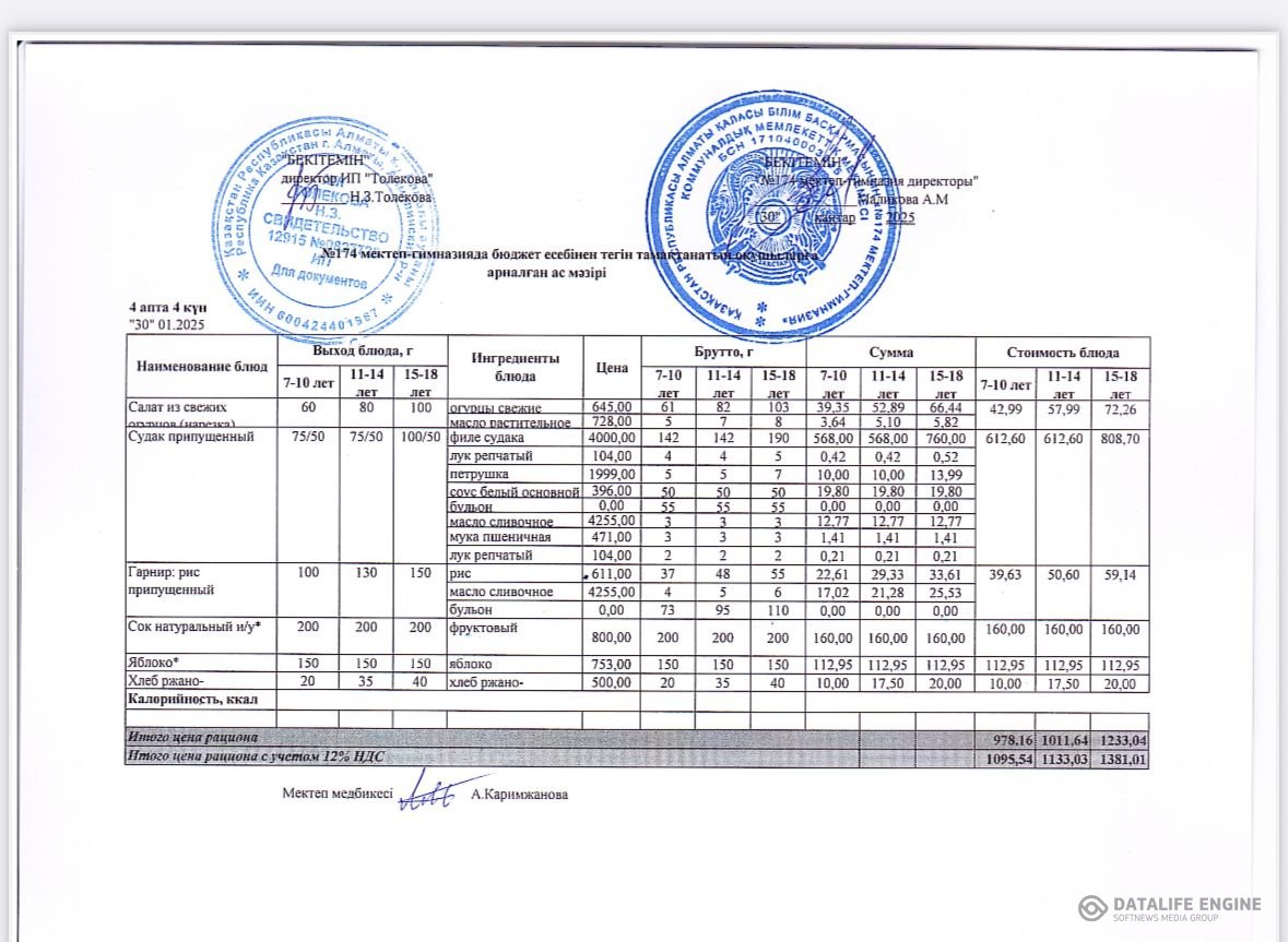 Ыстық тамақты ұйымдастырудың жұмыс жоспары