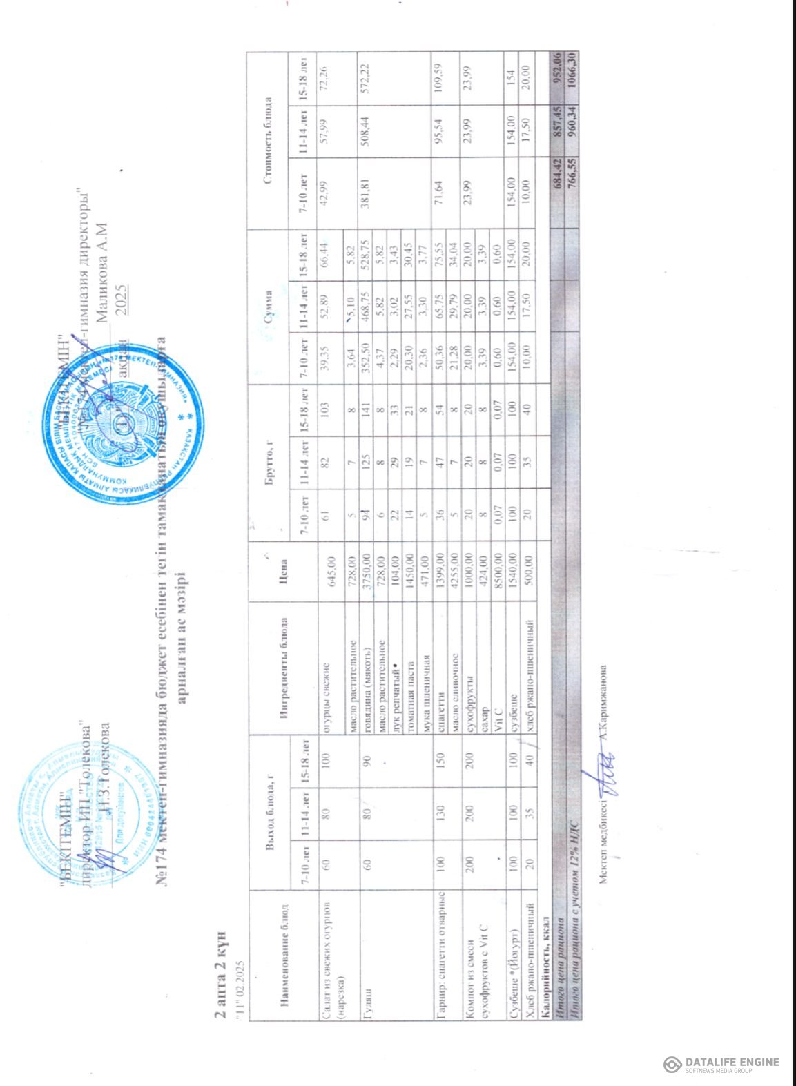 Ыстық тамақты ұйымдастырудың жұмыс жоспары