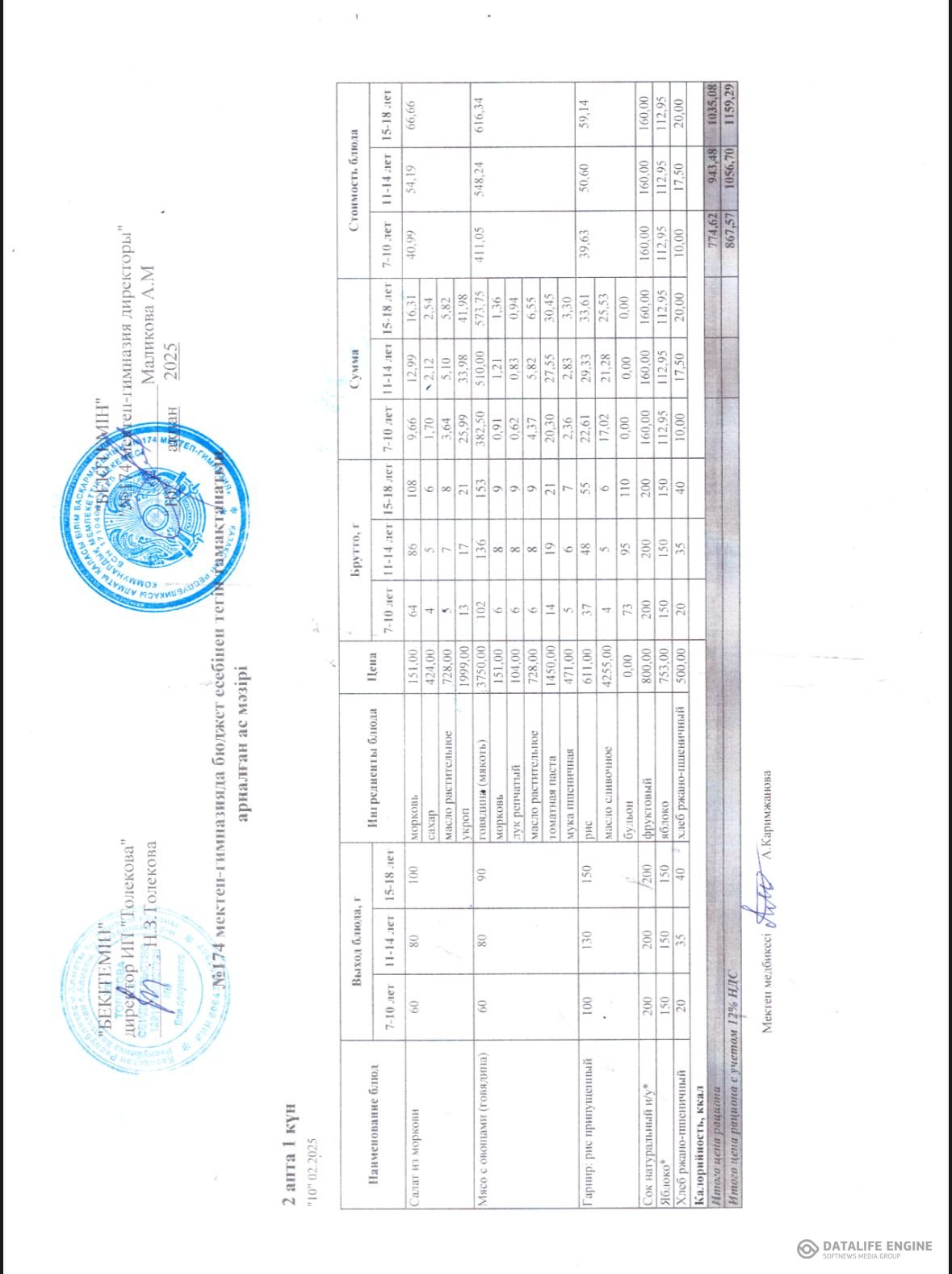 Ыстық тамақты ұйымдастырудың жұмыс жоспары