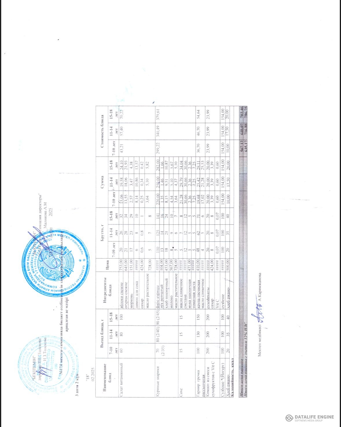Ыстық тамақты ұйымдастырудың жұмыс жоспары