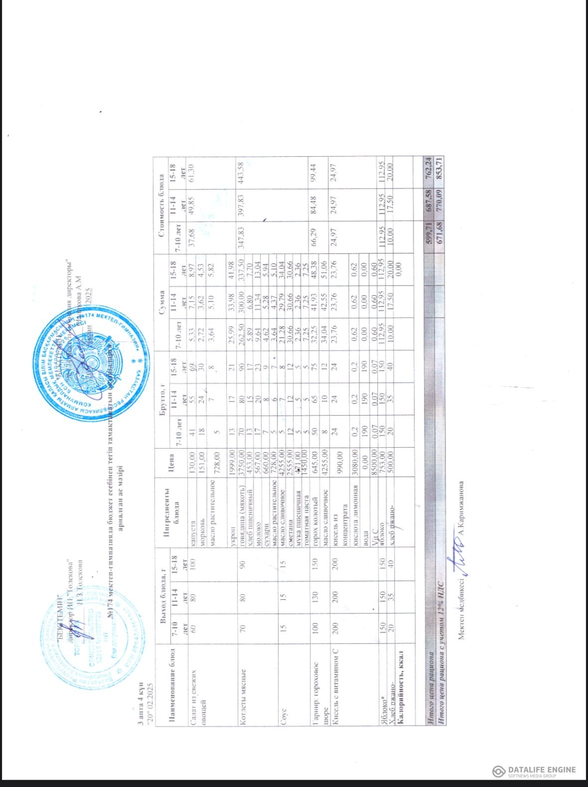 Ыстық тамақты ұйымдастырудың жұмыс жоспары