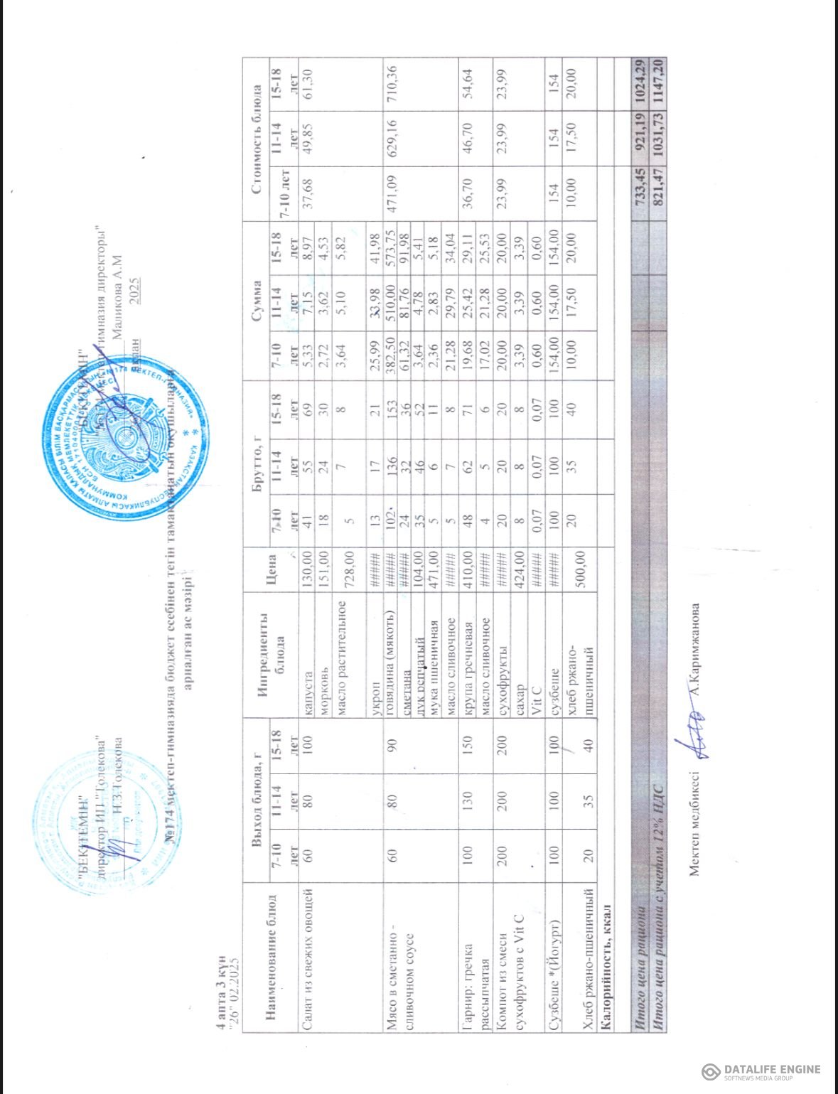 Ыстық тамақты ұйымдастырудың жұмыс жоспары