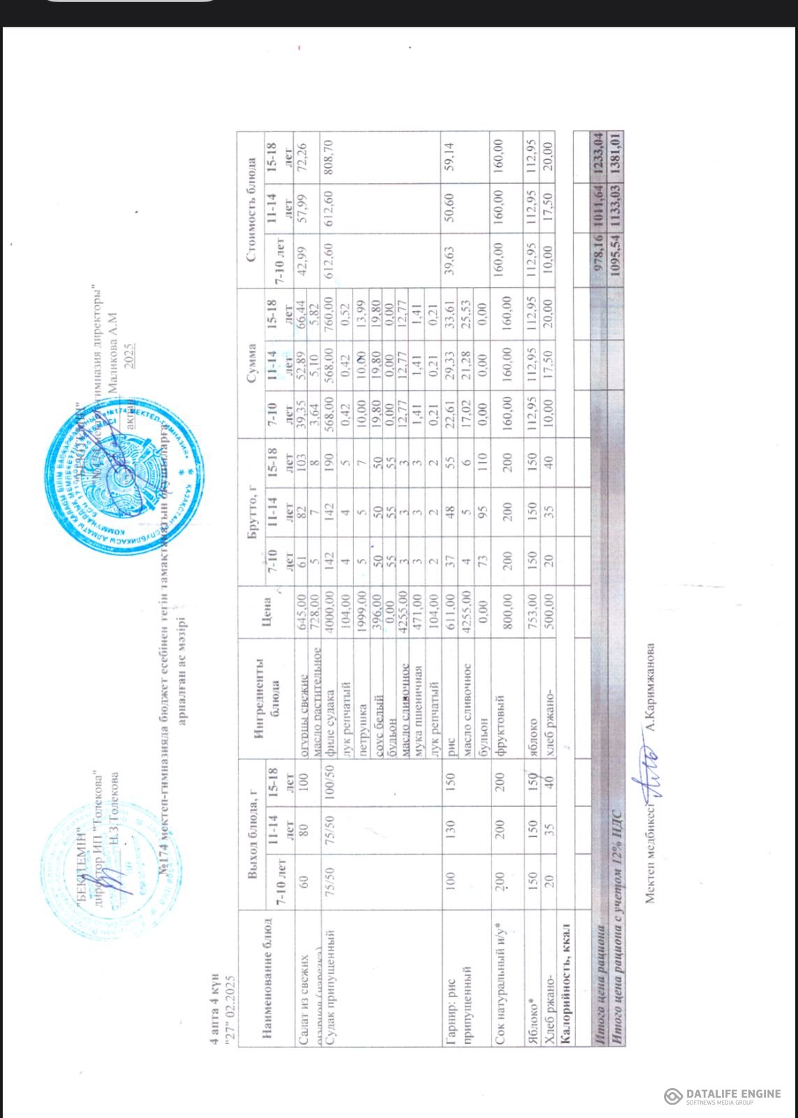 Ыстық тамақты ұйымдастырудың жұмыс жоспары