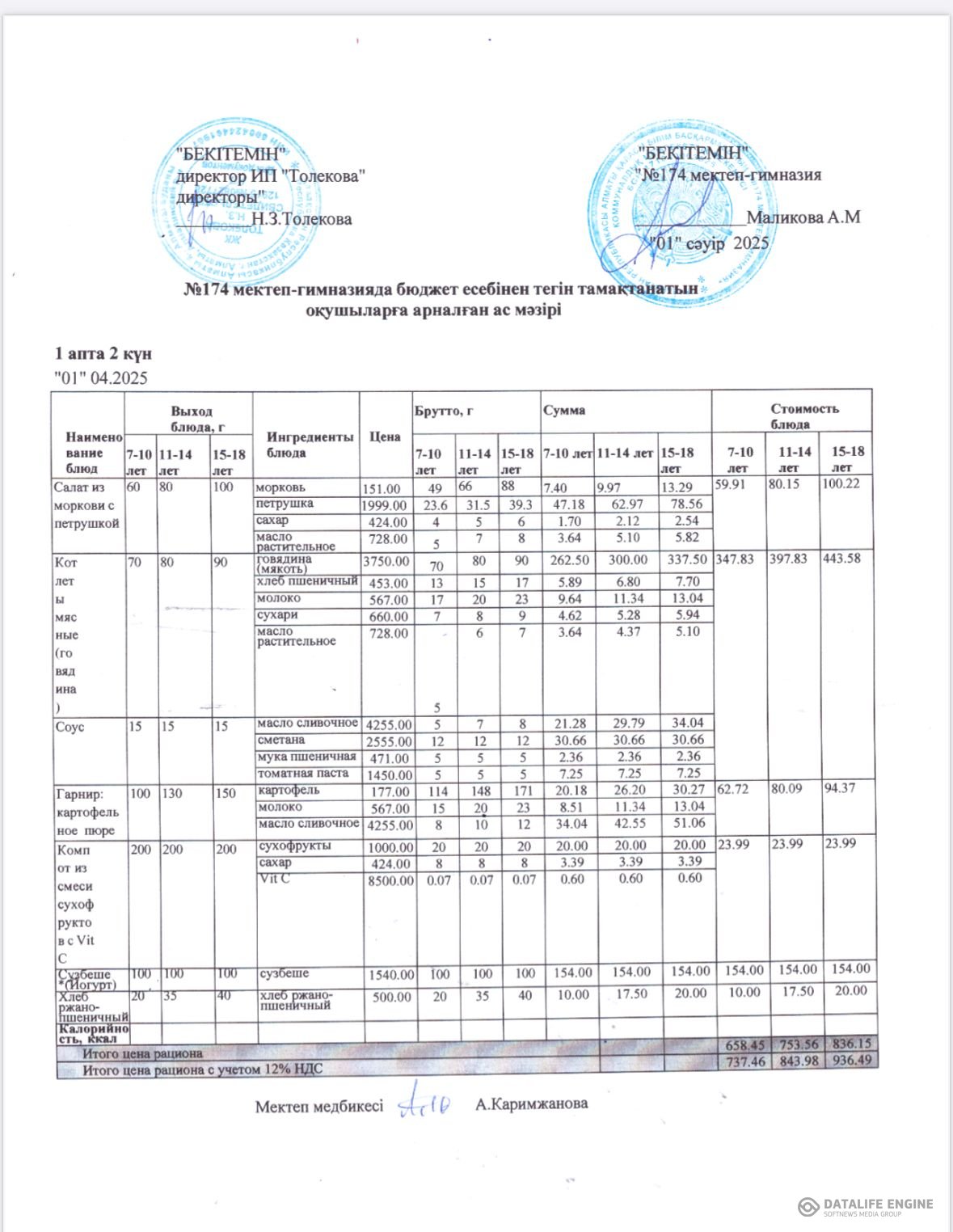 Ыстық тамақты ұйымдастырудың жұмыс жоспары