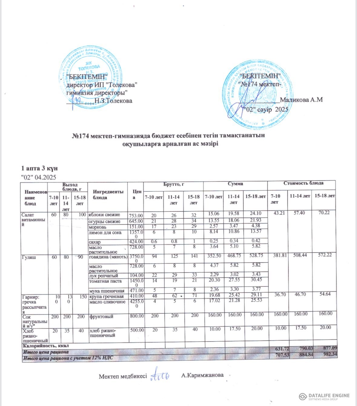 Ыстық тамақты ұйымдастырудың жұмыс жоспары