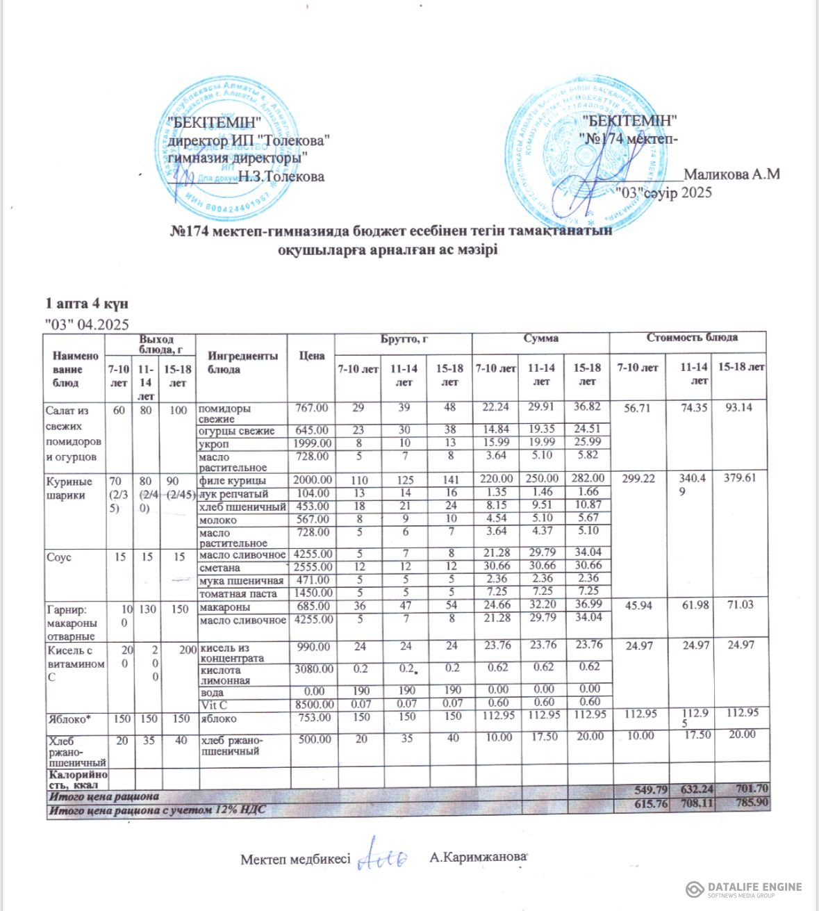 Ыстық тамақты ұйымдастырудың жұмыс жоспары