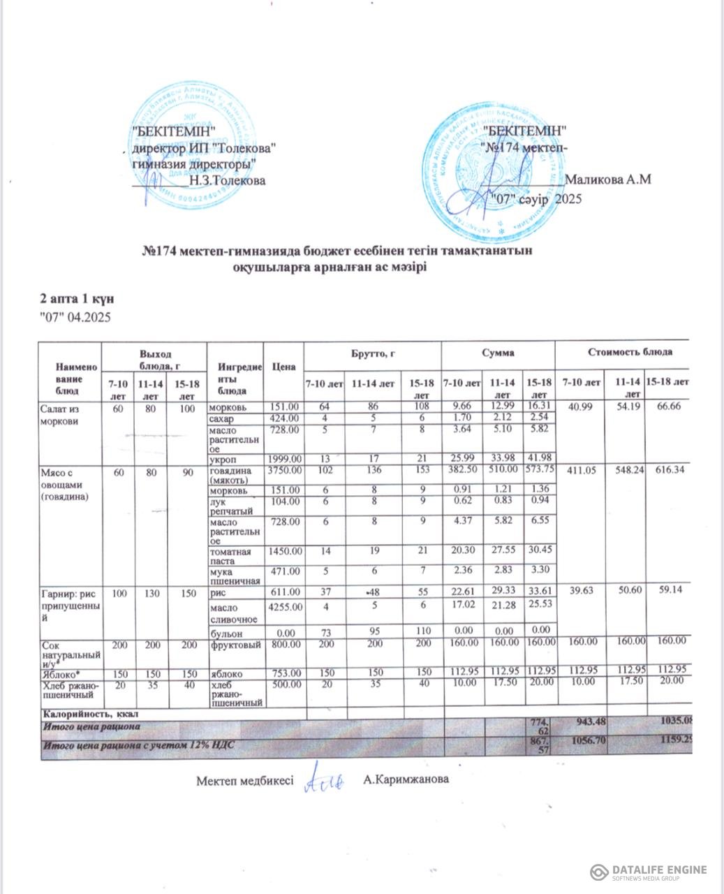 Ыстық тамақты ұйымдастырудың жұмыс жоспары