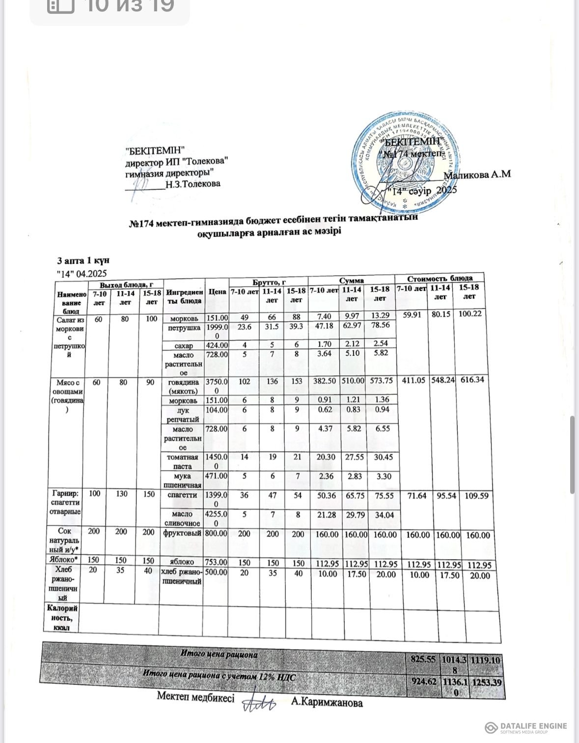 Ыстық тамақты ұйымдастырудың жұмыс жоспары