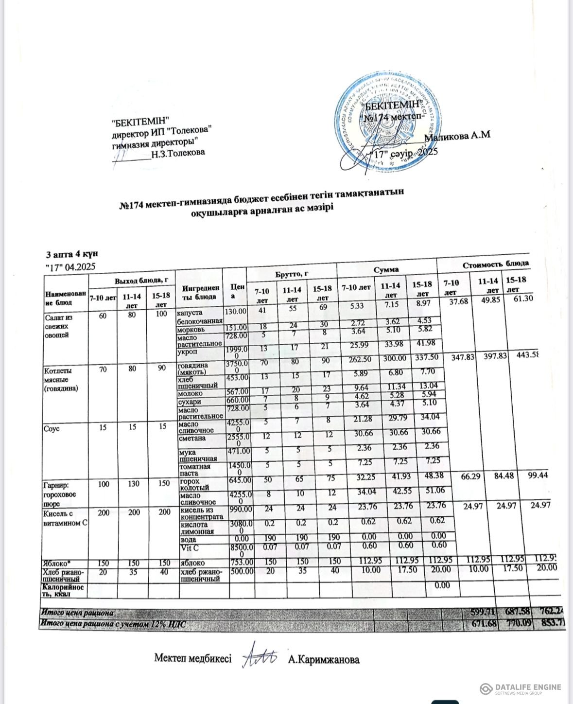 Ыстық тамақты ұйымдастырудың жұмыс жоспары