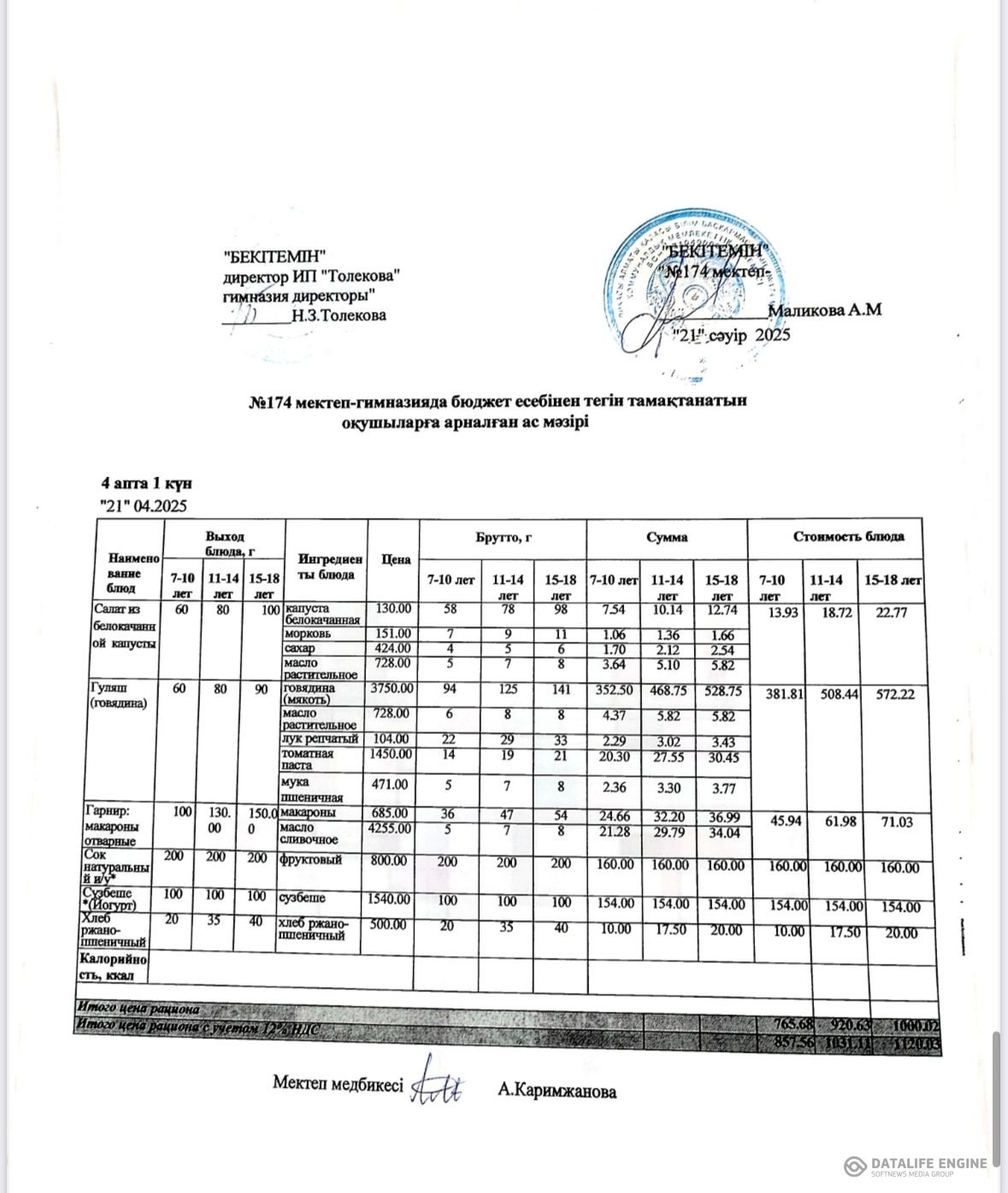 Ыстық тамақты ұйымдастырудың жұмыс жоспары