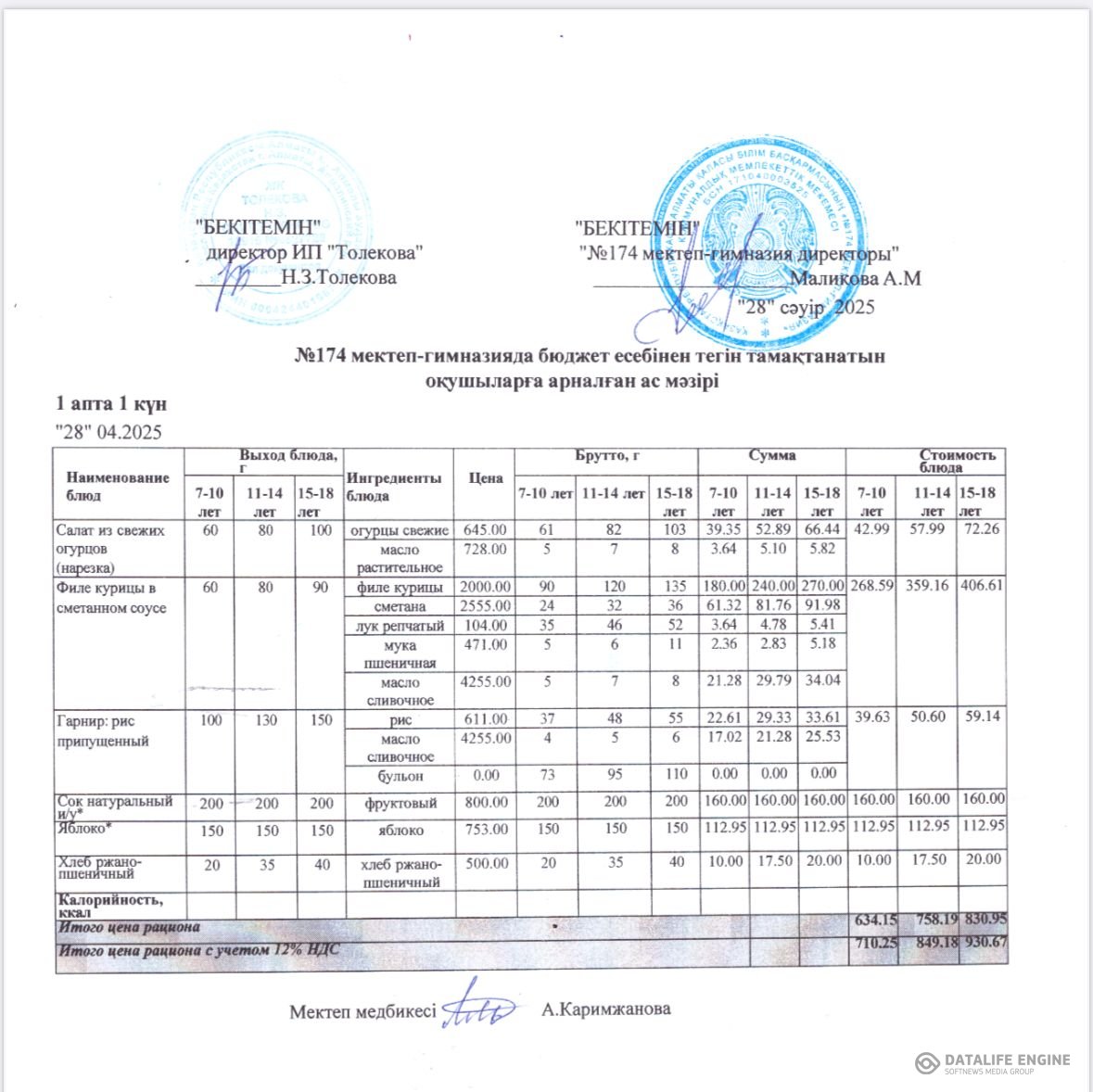 Ыстық тамақты ұйымдастырудың жұмыс жоспары