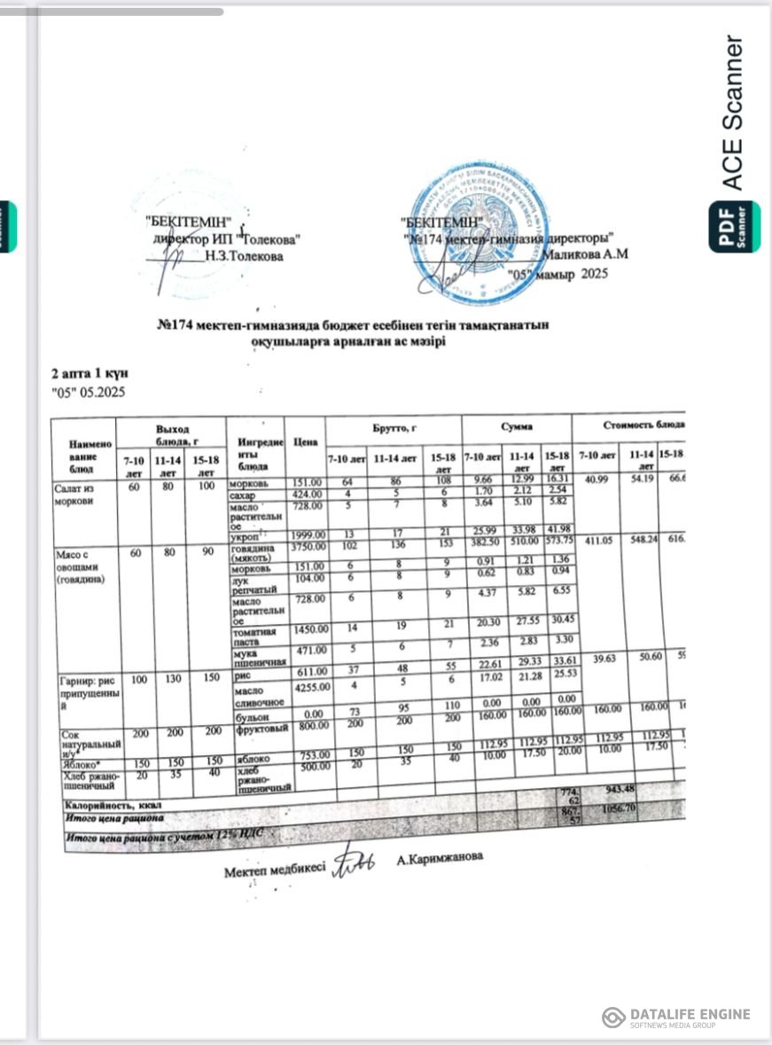 Ыстық тамақты ұйымдастырудың жұмыс жоспары