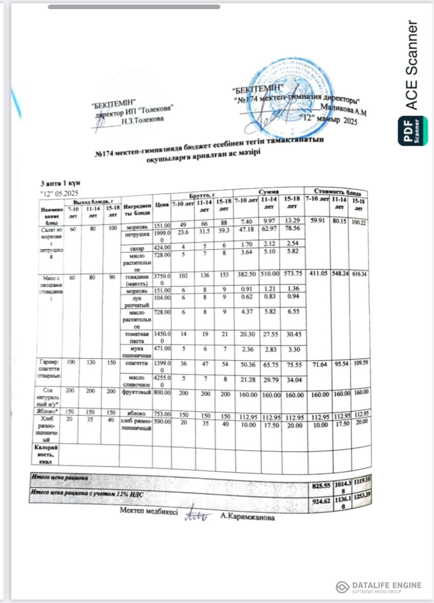 Ыстық тамақты ұйымдастырудың жұмыс жоспары