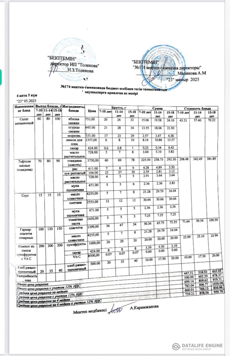 Ыстық тамақты ұйымдастырудың жұмыс жоспары
