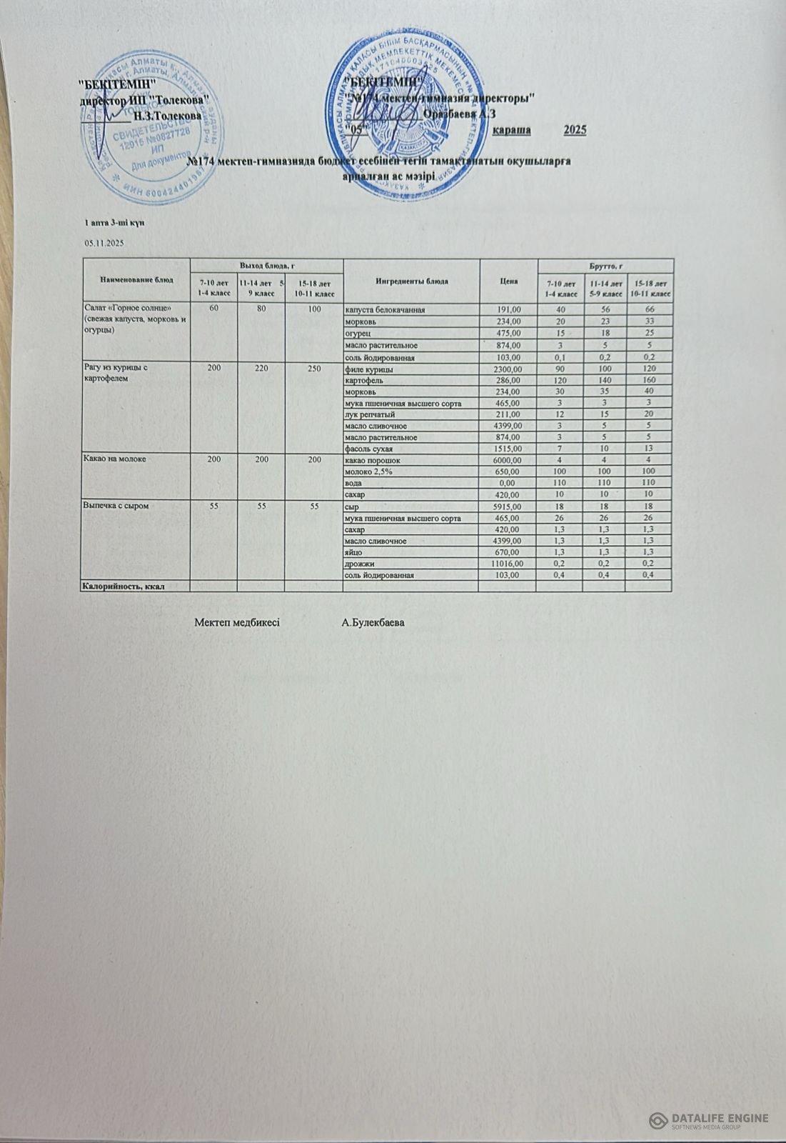 Ыстық тамақты ұйымдастырудың жұмыс жоспары