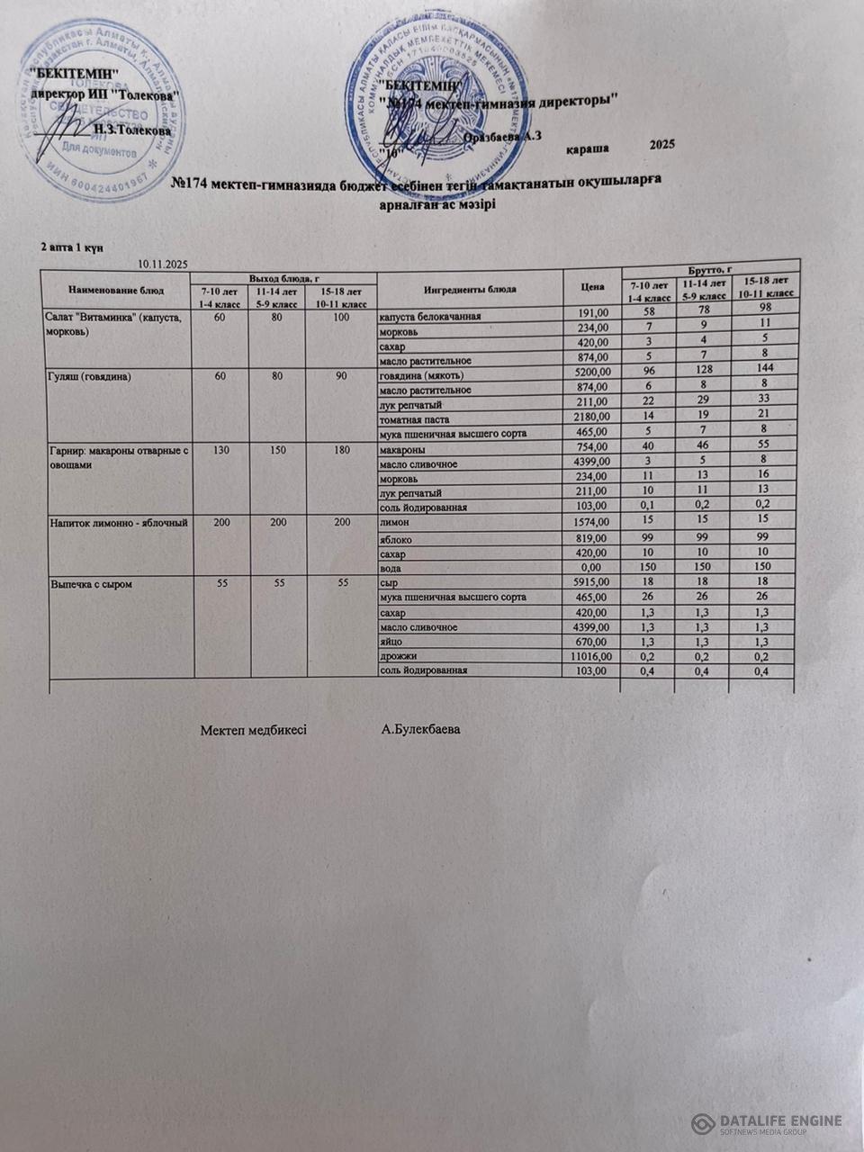 Ыстық тамақты ұйымдастырудың жұмыс жоспары