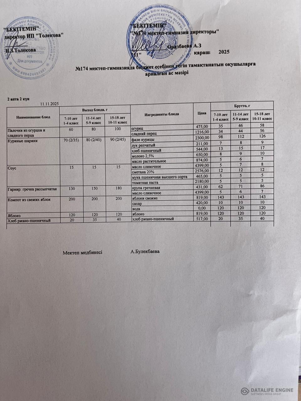 Ыстық тамақты ұйымдастырудың жұмыс жоспары