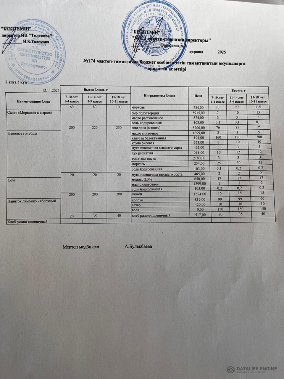 Ыстық тамақты ұйымдастырудың жұмыс жоспары
