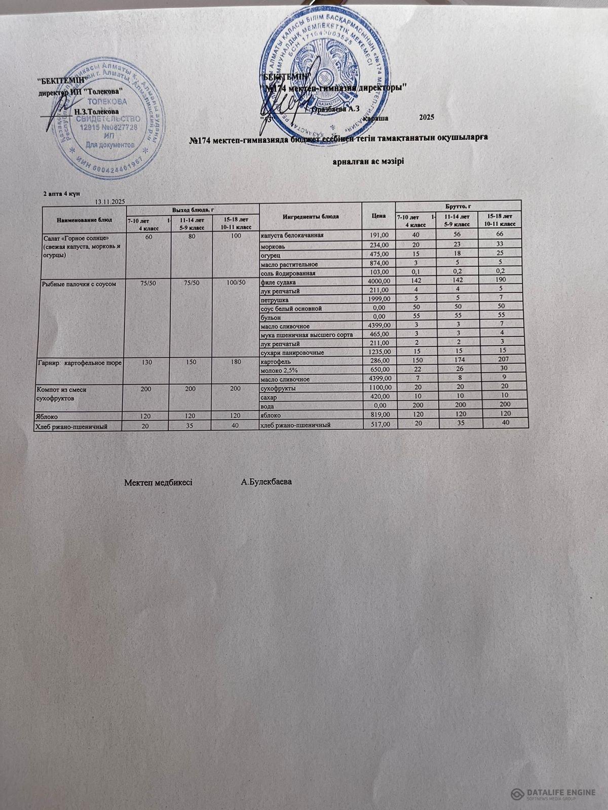 Ыстық тамақты ұйымдастырудың жұмыс жоспары