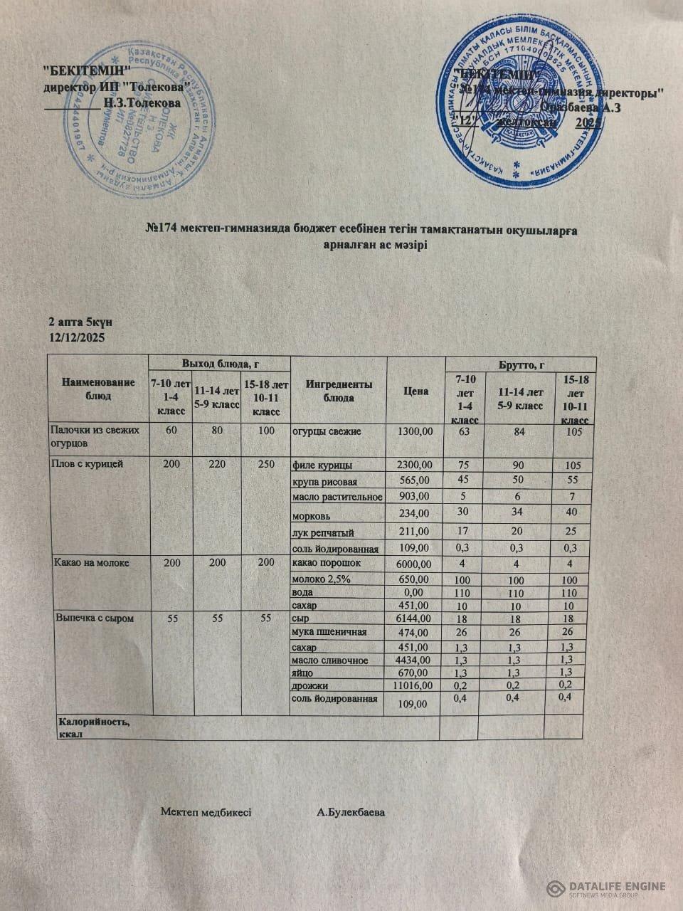 Ыстық тамақты ұйымдастырудың жұмыс жоспары